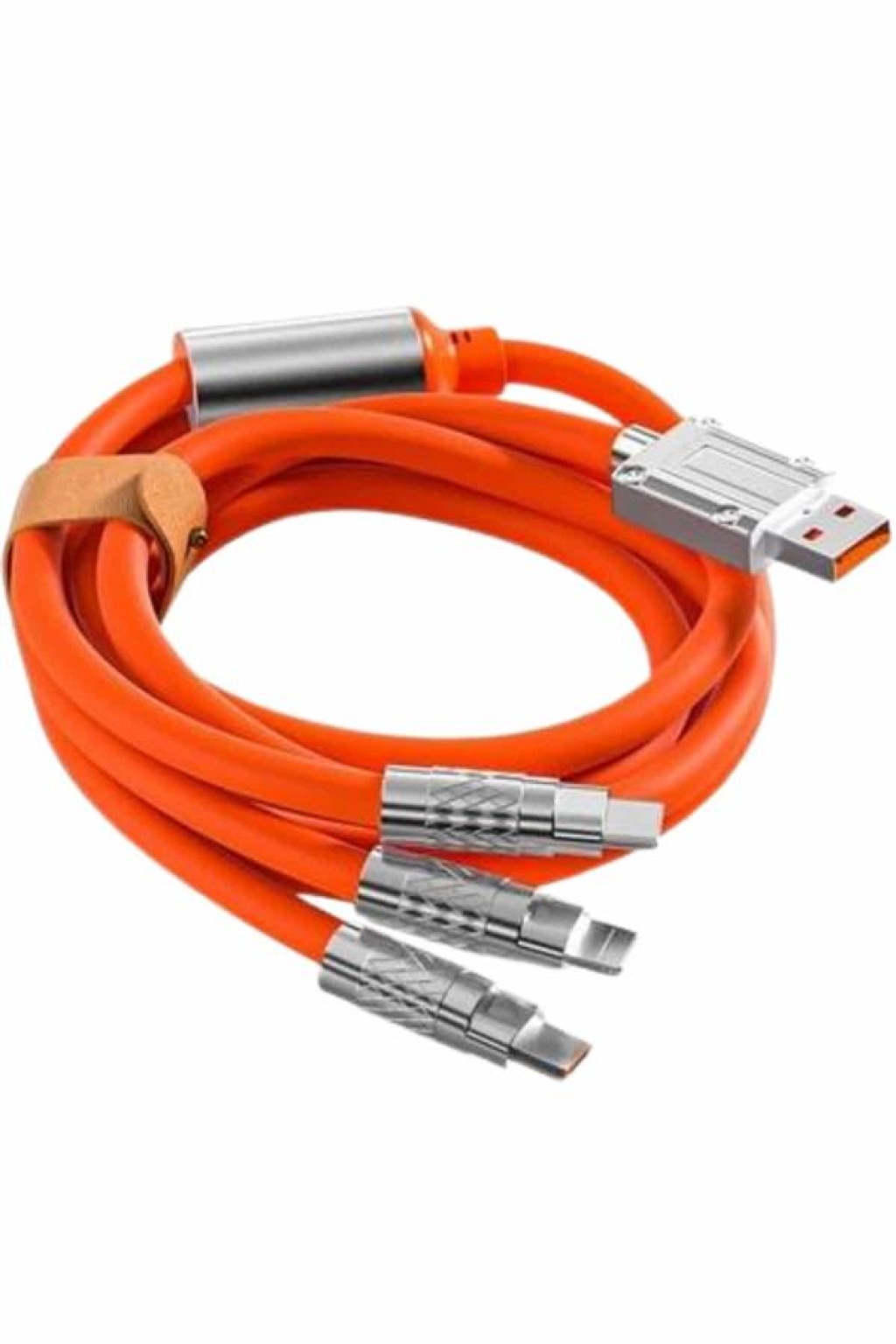 120W Silikon Metal Uçlu LED Işıklı 3 In1 Şarj Kablosu 1.2m - Lisinya