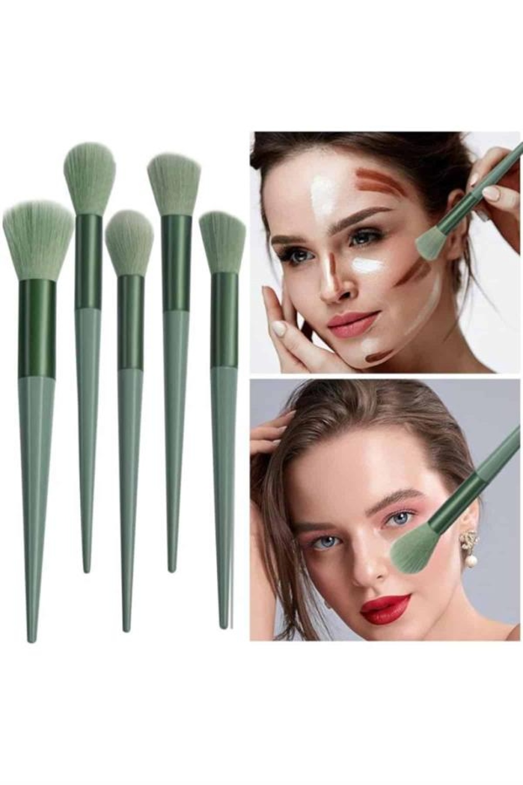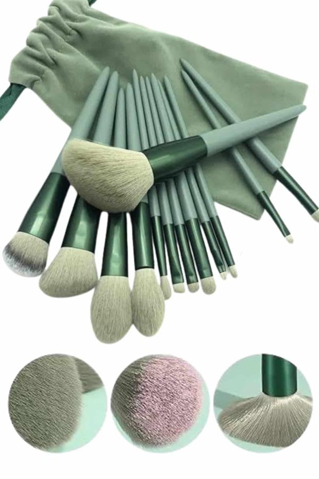 Makyaj Fırça Seti Yeşil 13 Parça Fondöten Fırçası Allık Fırçası Far Fırçası -