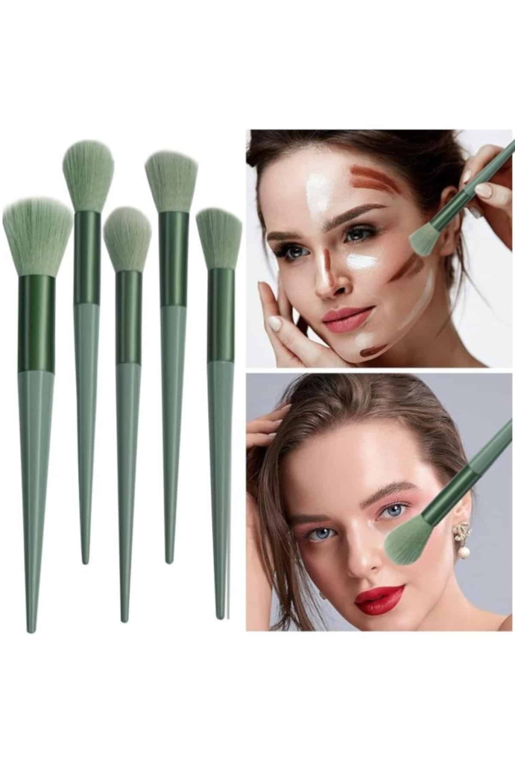 Makyaj Fırça Seti Yeşil 13 Parça Fondöten Fırçası Allık Fırçası Far Fırçası -