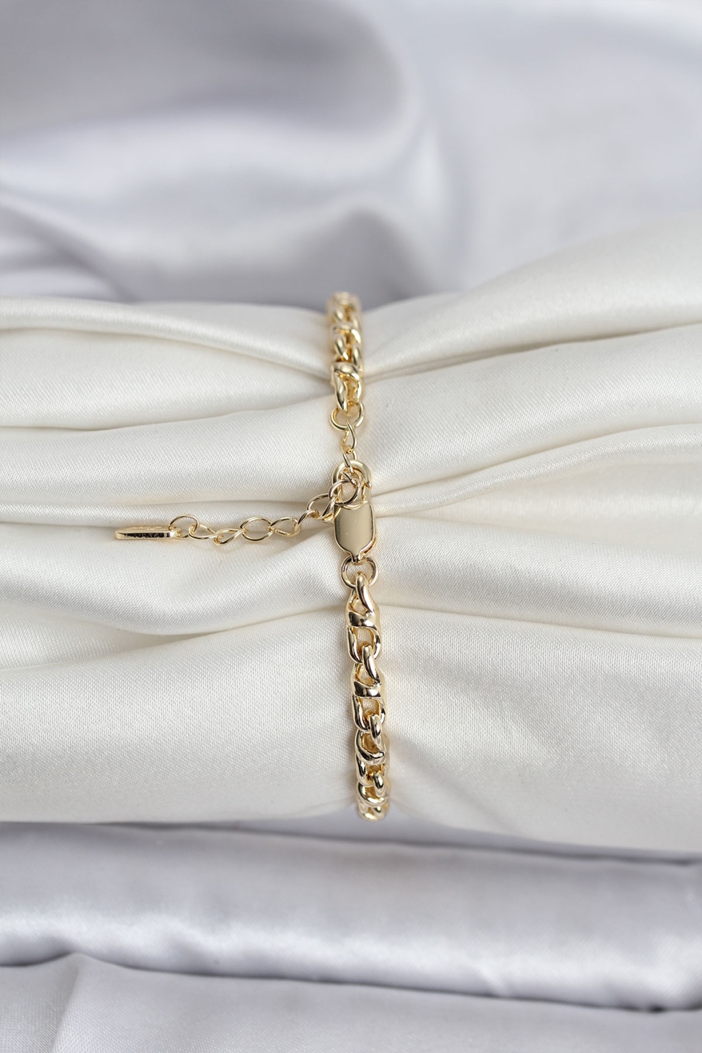 14K Gold Renk Kaplama Zincir Model Kadın CM Bileklik - Lisinya