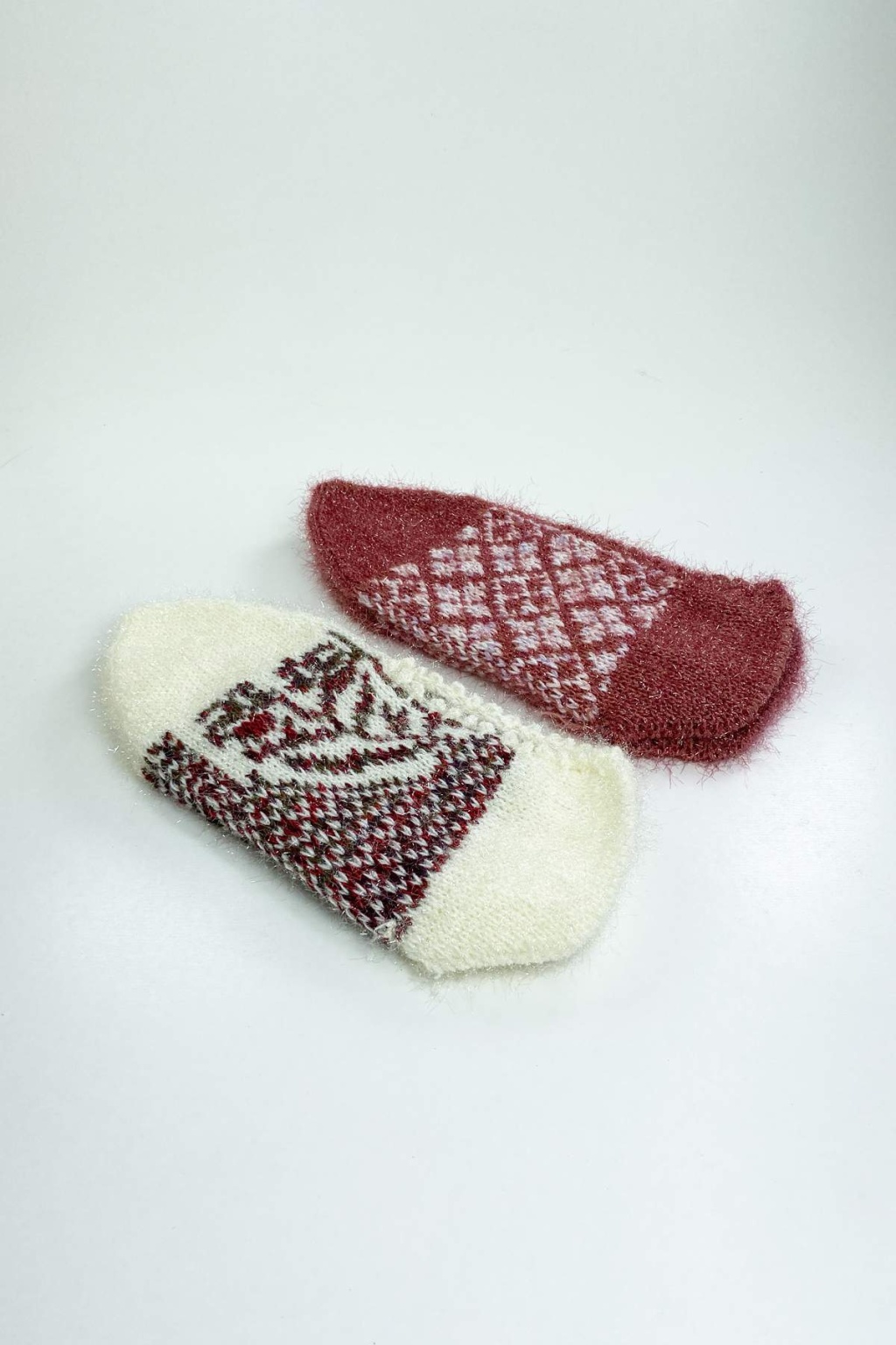 2 Çift El Örgüsü Kışlık Şık Kadın Yün Patik Set 2