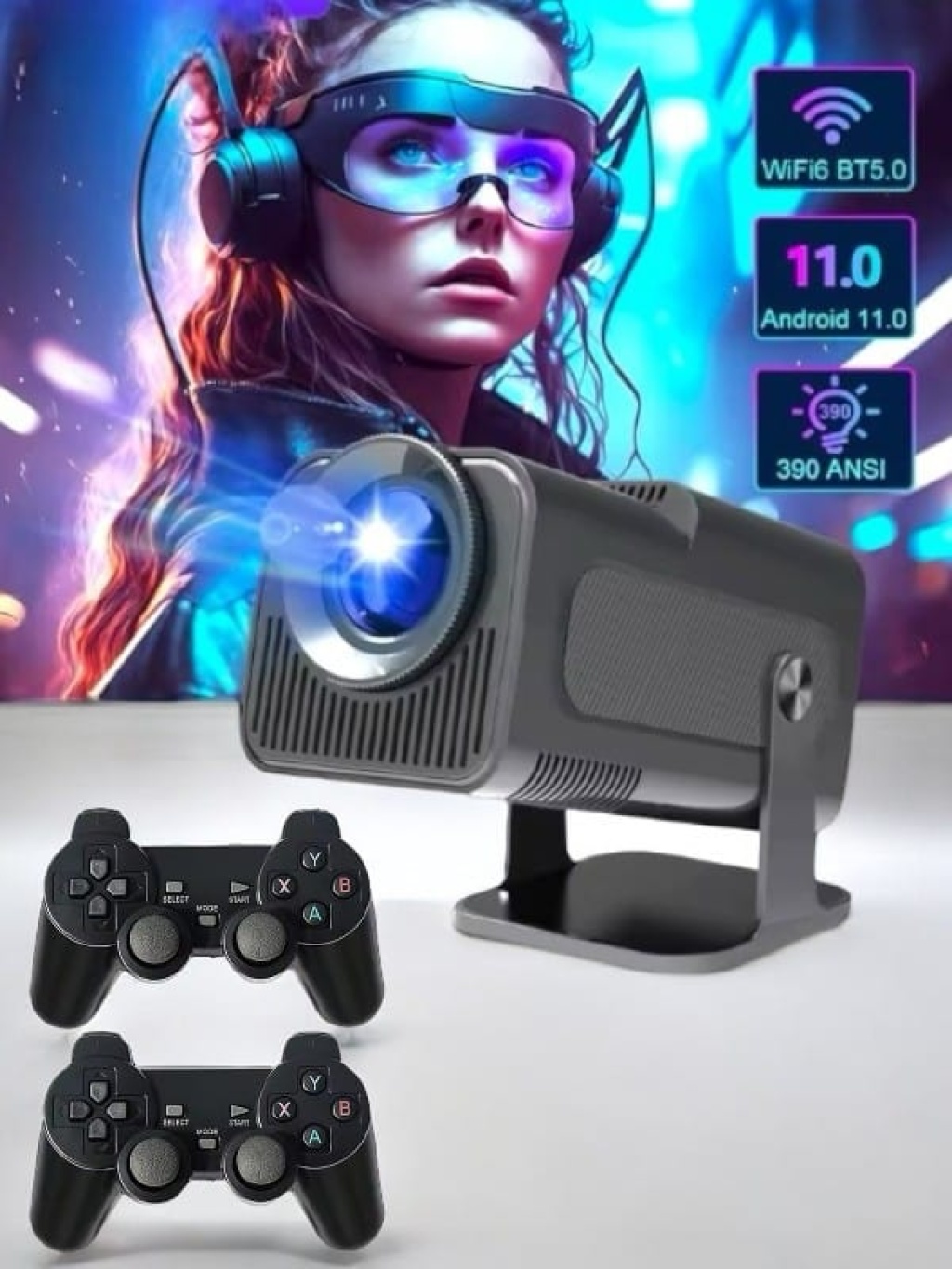 Çift Kollu Projeksiyon Taşınabilir Game Projektör Full Hd 1080P 4k Projeksiyon Gamepad -