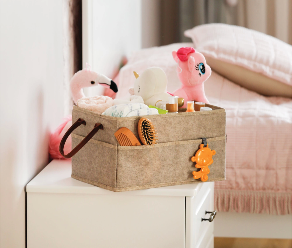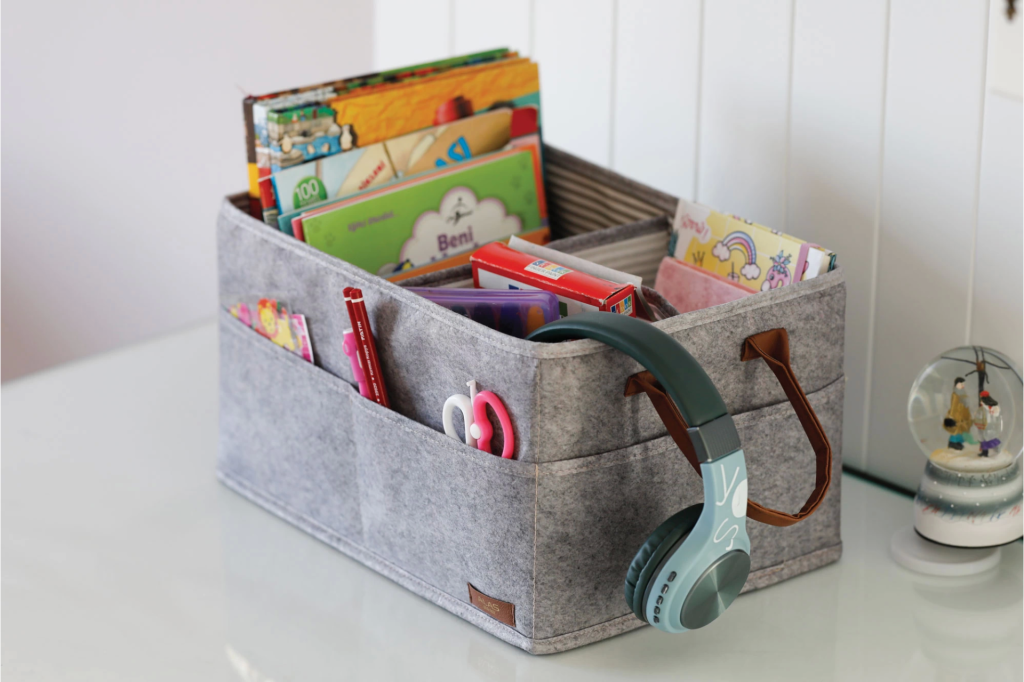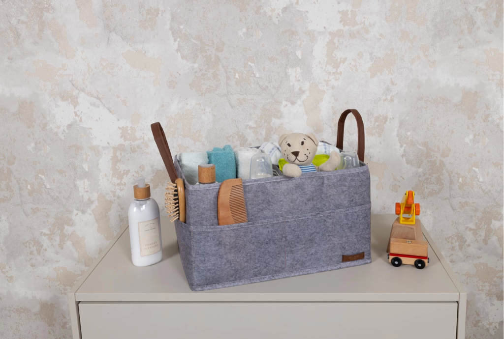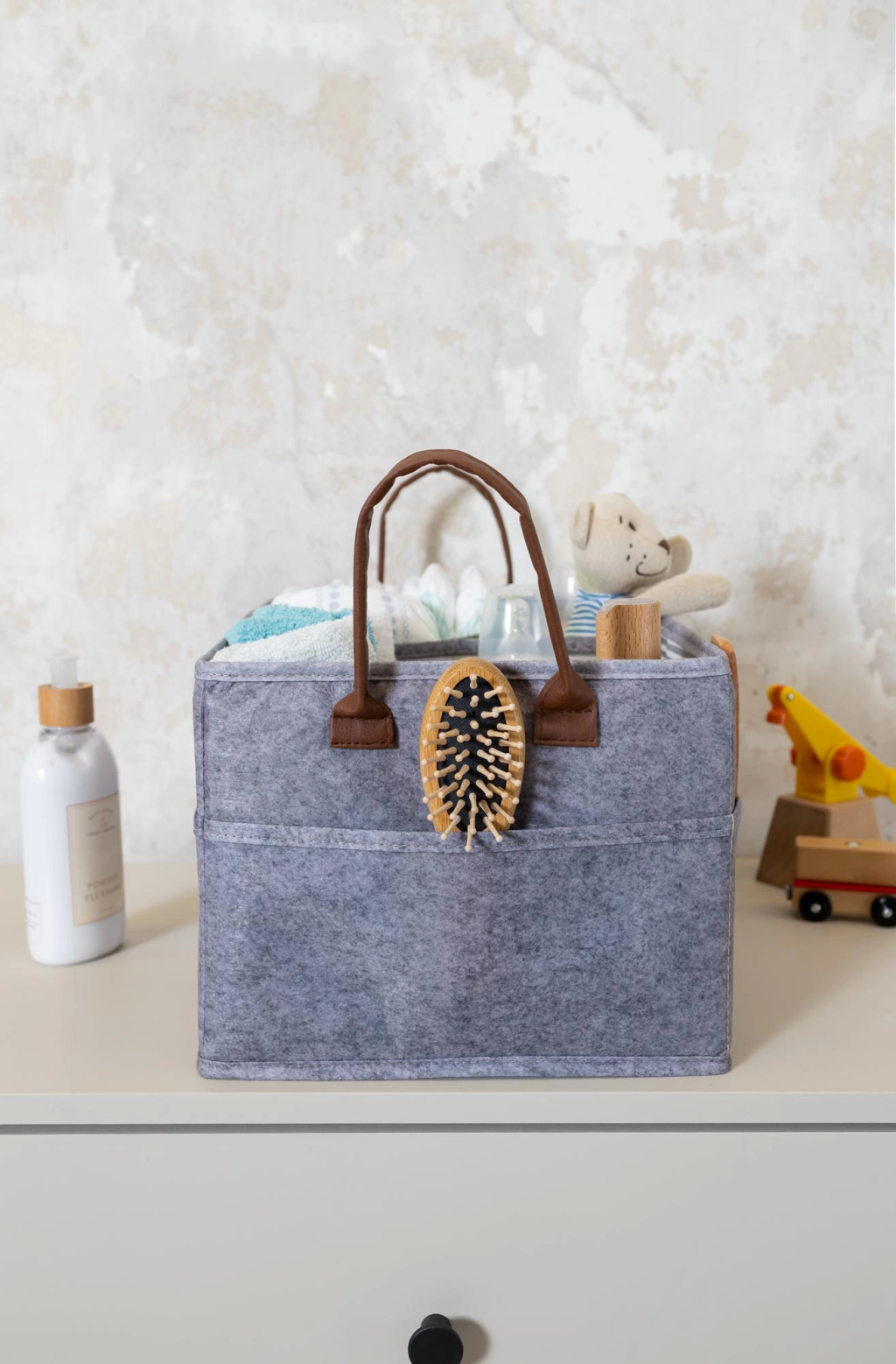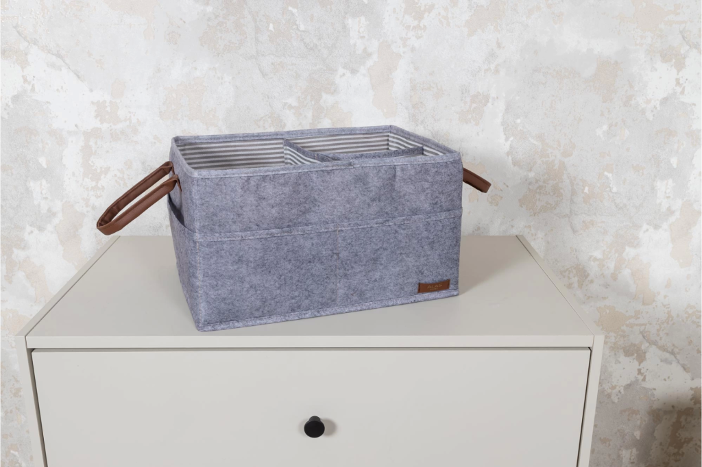 3 Gözlü Deri Şeritli Çok Amaçlı Düzenleyici Organizer Kutu Keçe Sepet 03860