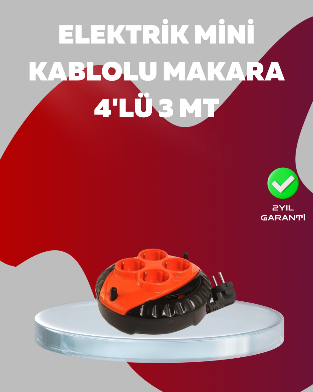 3 Metre Kablolu 4’lü Kırmızı Priz Makara -