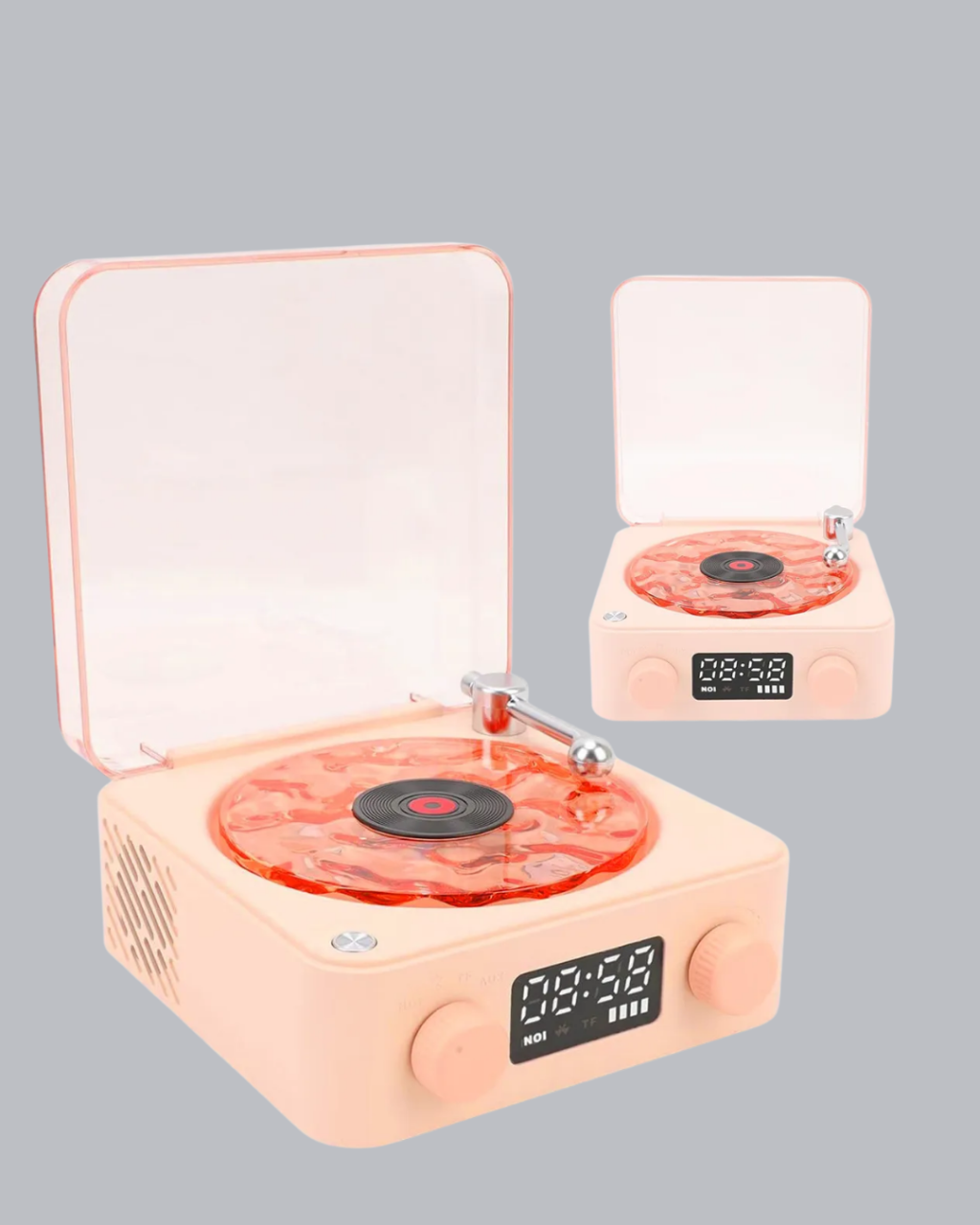 3-ü-1 Gece Işığı Bluetooth Hoparlör ve Dijital Saat Vintage Plak Çalar Tasarımlı -
