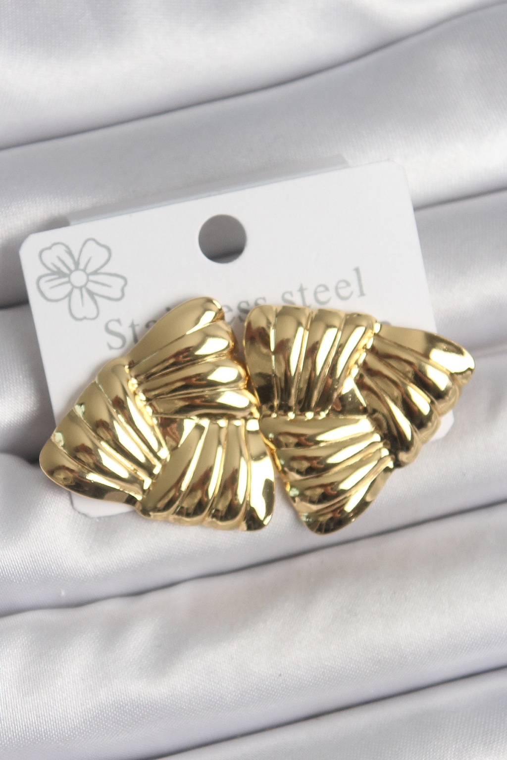 316 Çelik Gold Renk İşlemeli Üçgen Model Kadın Küpe - Lisinya