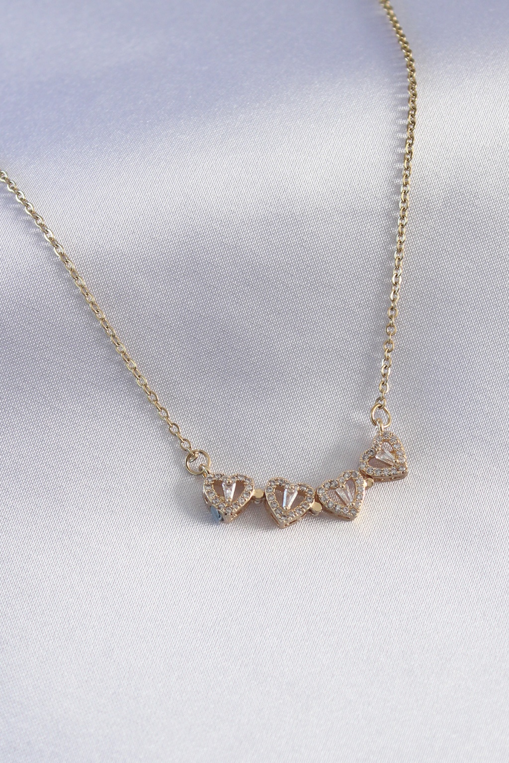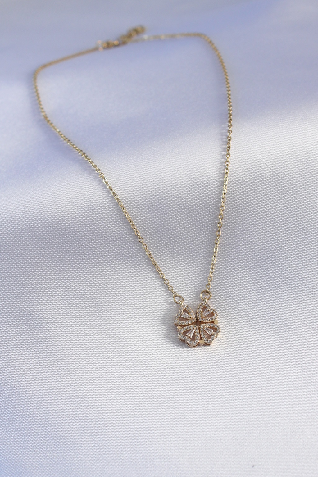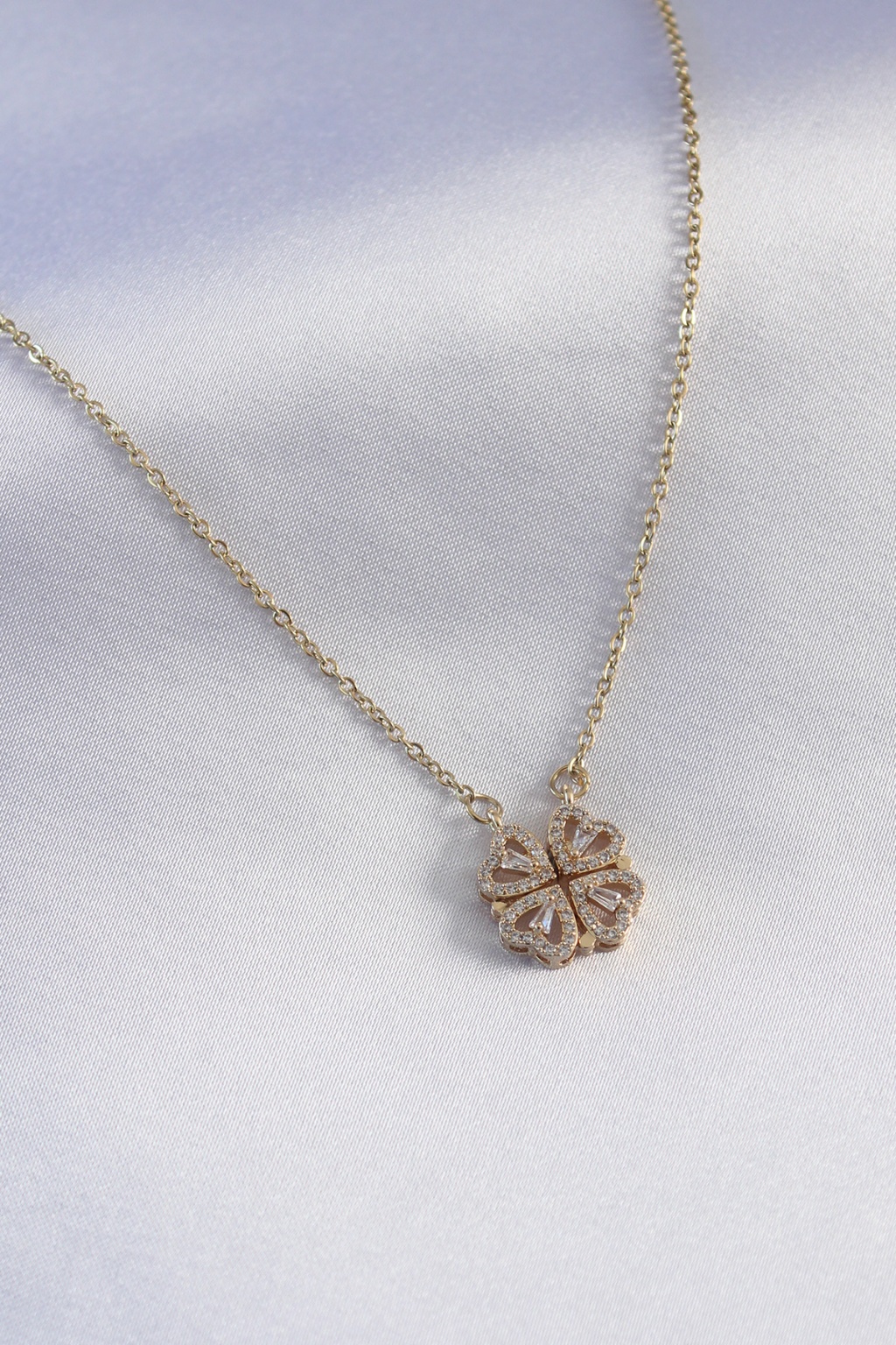 316L Çelik Gold Renk Açılır Zirkon Taşlı Yonca Model Kadın Kolye -