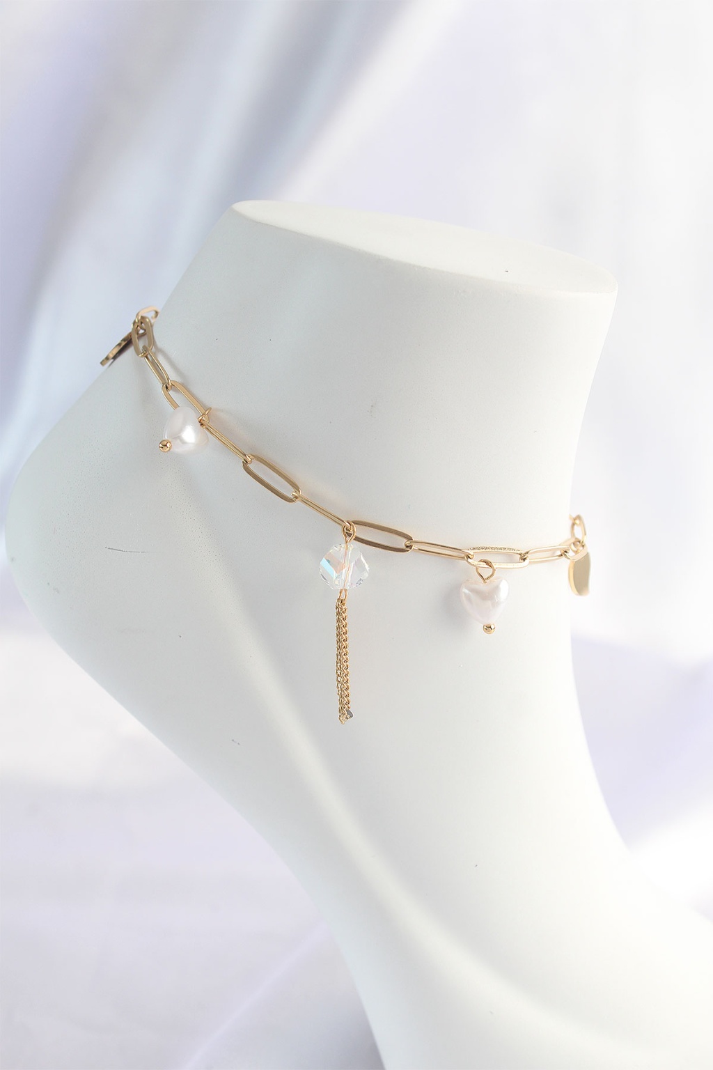 316L Çelik Gold Renk Kalp Detaylı Sallantılı Halhal - Lisinya