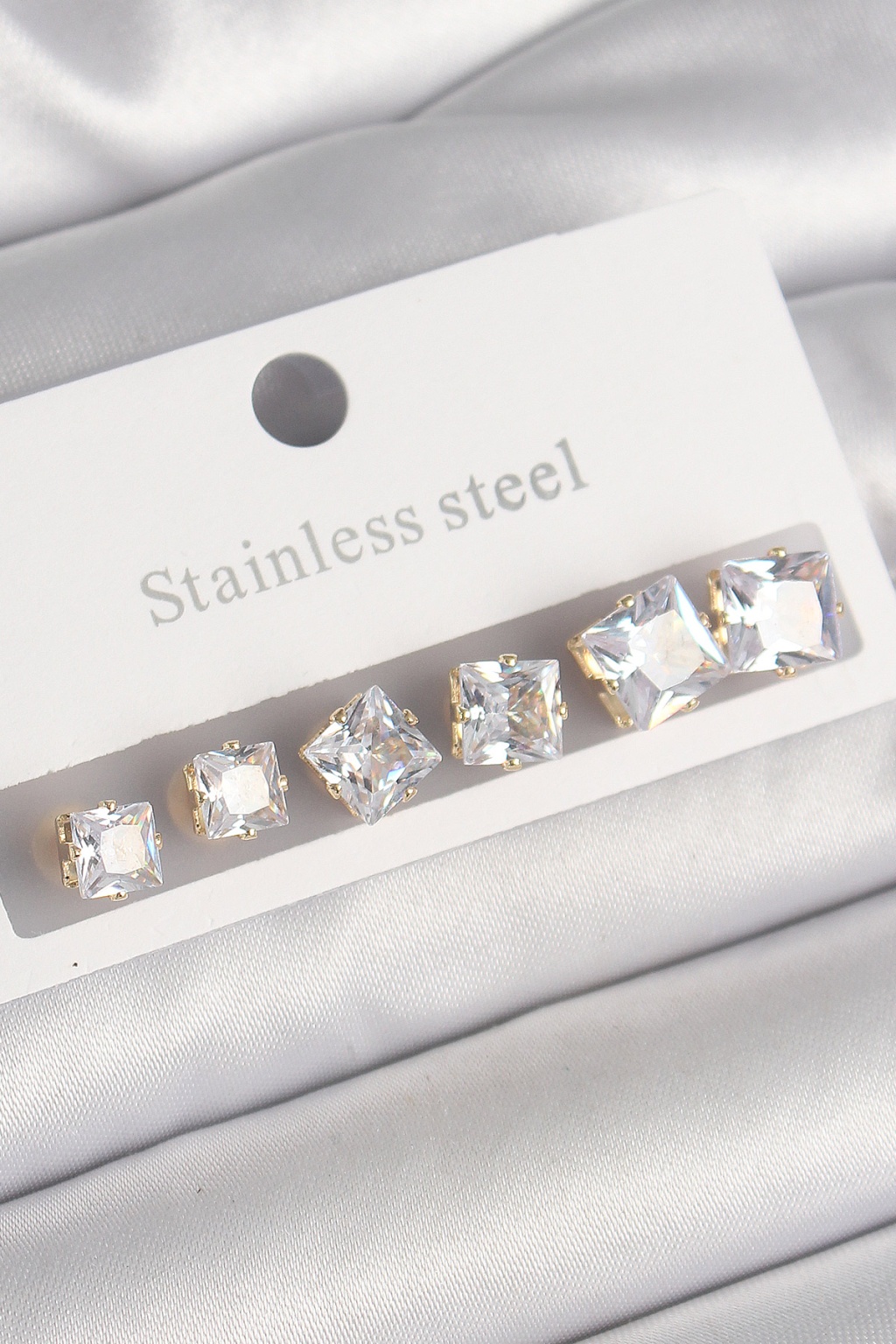 316L Çelik Gold Renk Kare Zirkon Taş Model Kadın Küpe Seti - Lisinya