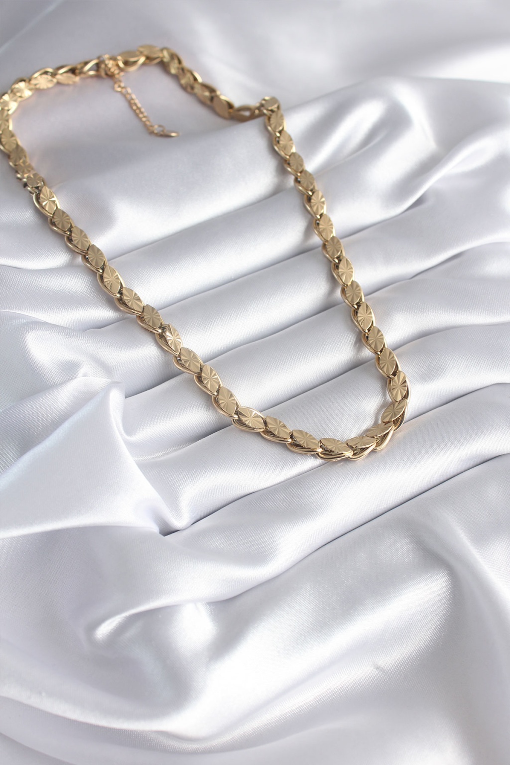 316L Çelik Gold Renk Lazer Kesim Arpa Zincir Model Kadın Kolye -