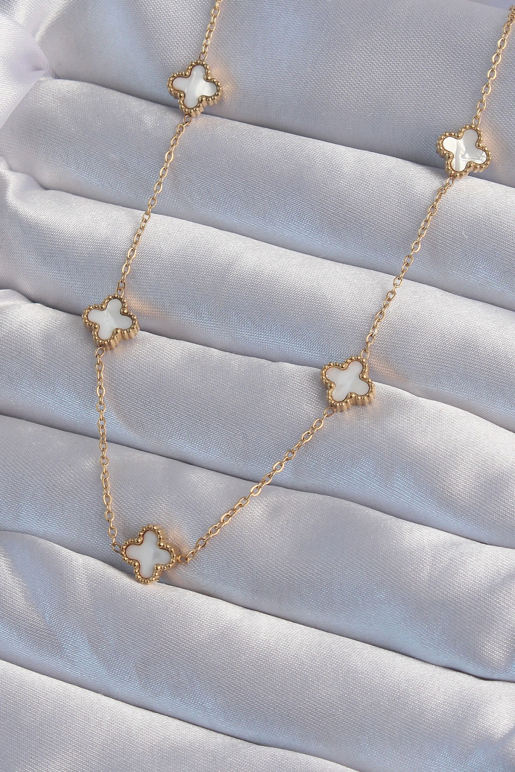 316L Çelik Gold Renk Minimal Beyaz Sedefli Yonca Kolye - Lisinya