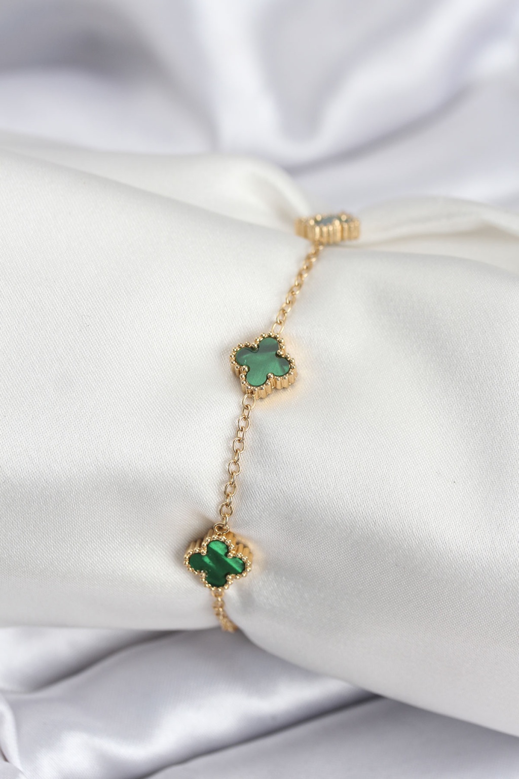 316L Çelik Gold Renk Yeşil Baby Boy Yonca Kadın Bileklik - Lisinya