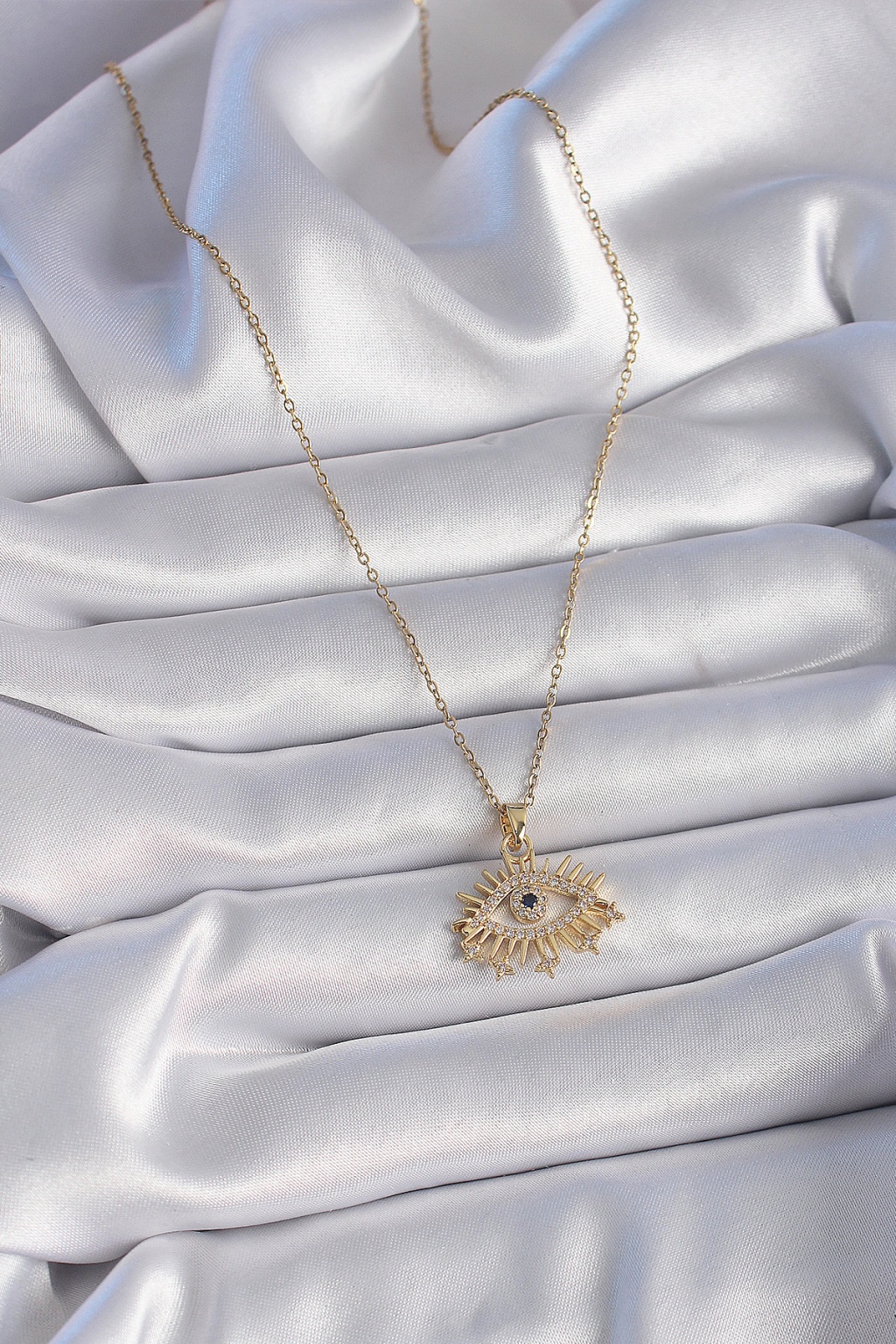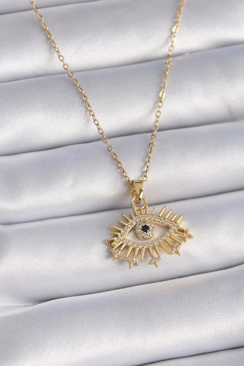 316L Çelik Gold Renk Zincir Zirkon Taşlı Göz Figür Kadın Kolye - Lisinya