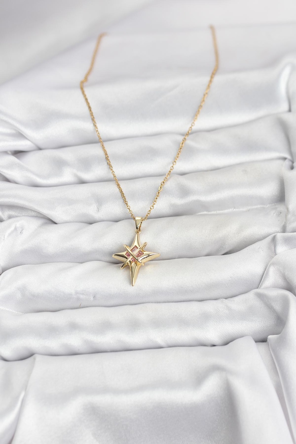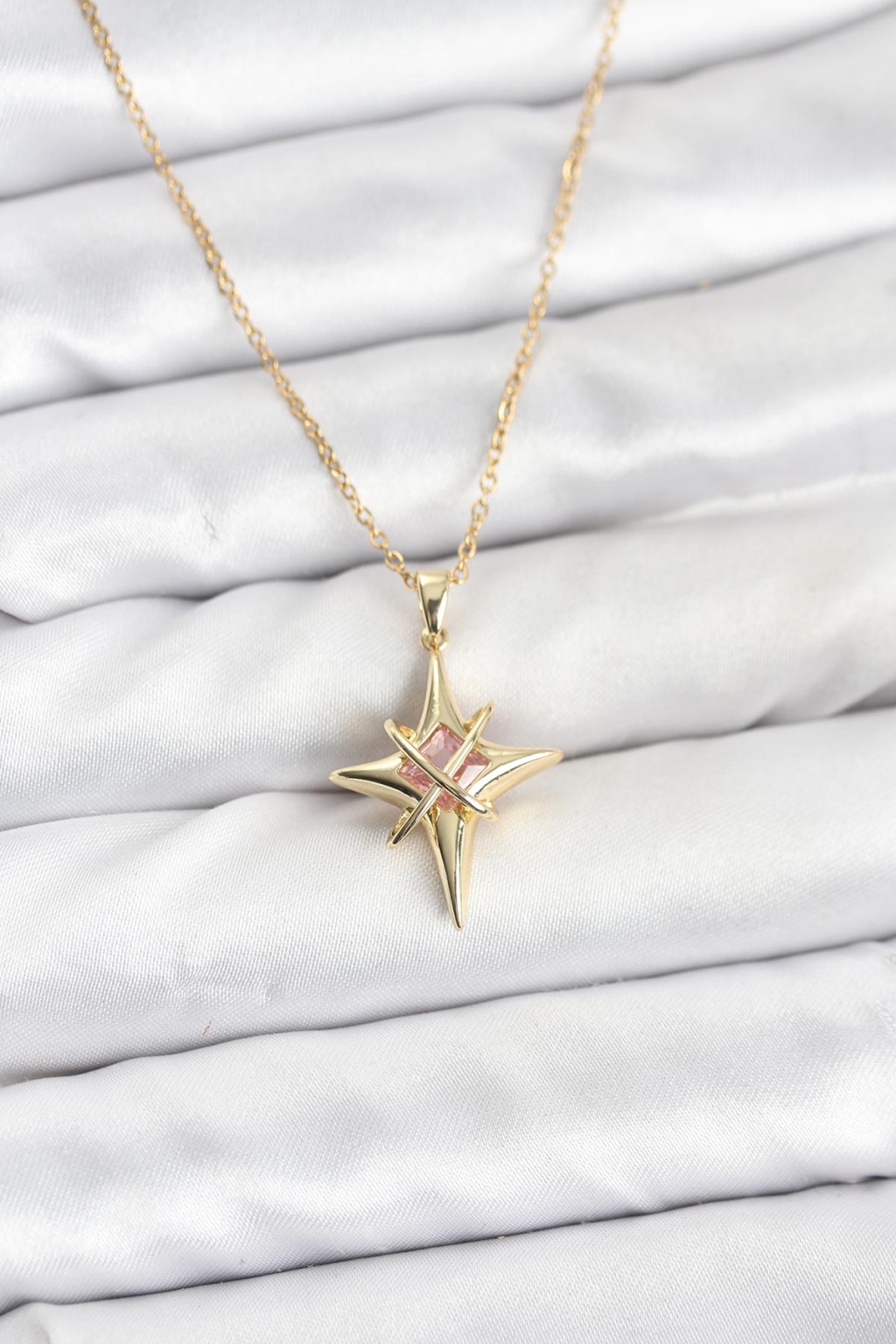 316L Çelik Gold Renk Zirkon Taşlı Kutup Yıldızı Model Kadın Kolye - Lisinya