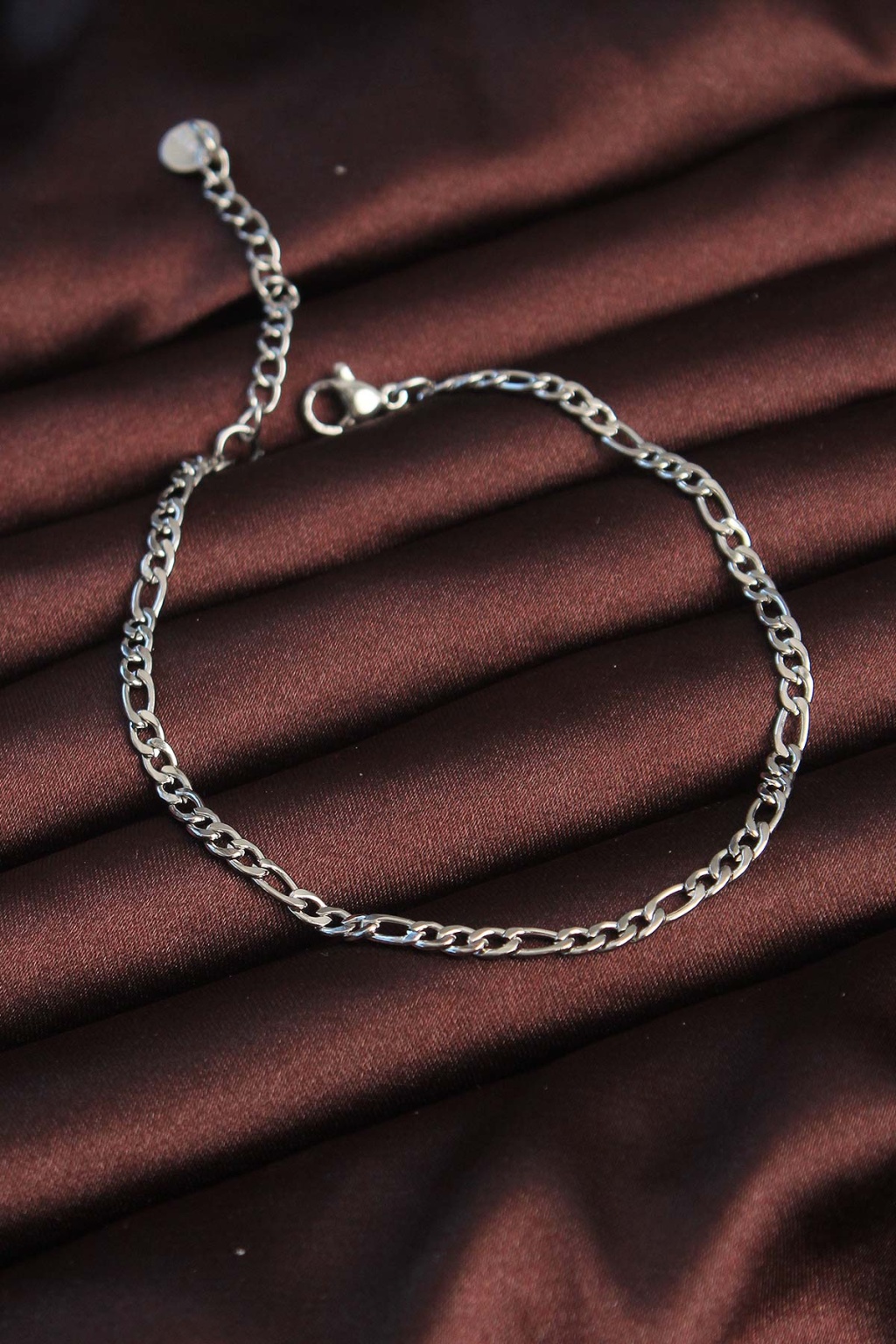 316L Çelik Gümüş Renk Kuş Gözü Erkek Zincir Bileklik -