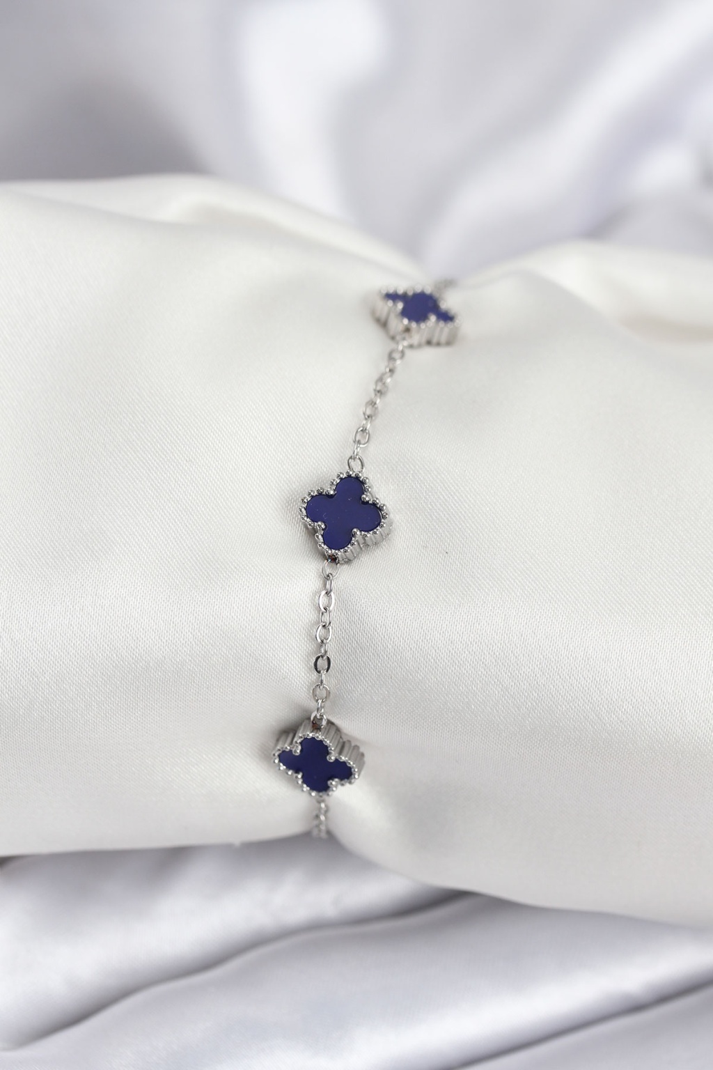 316L Çelik Gümüş Renk Lacivert Baby Boy Yonca Kadın Bileklik - Lisinya