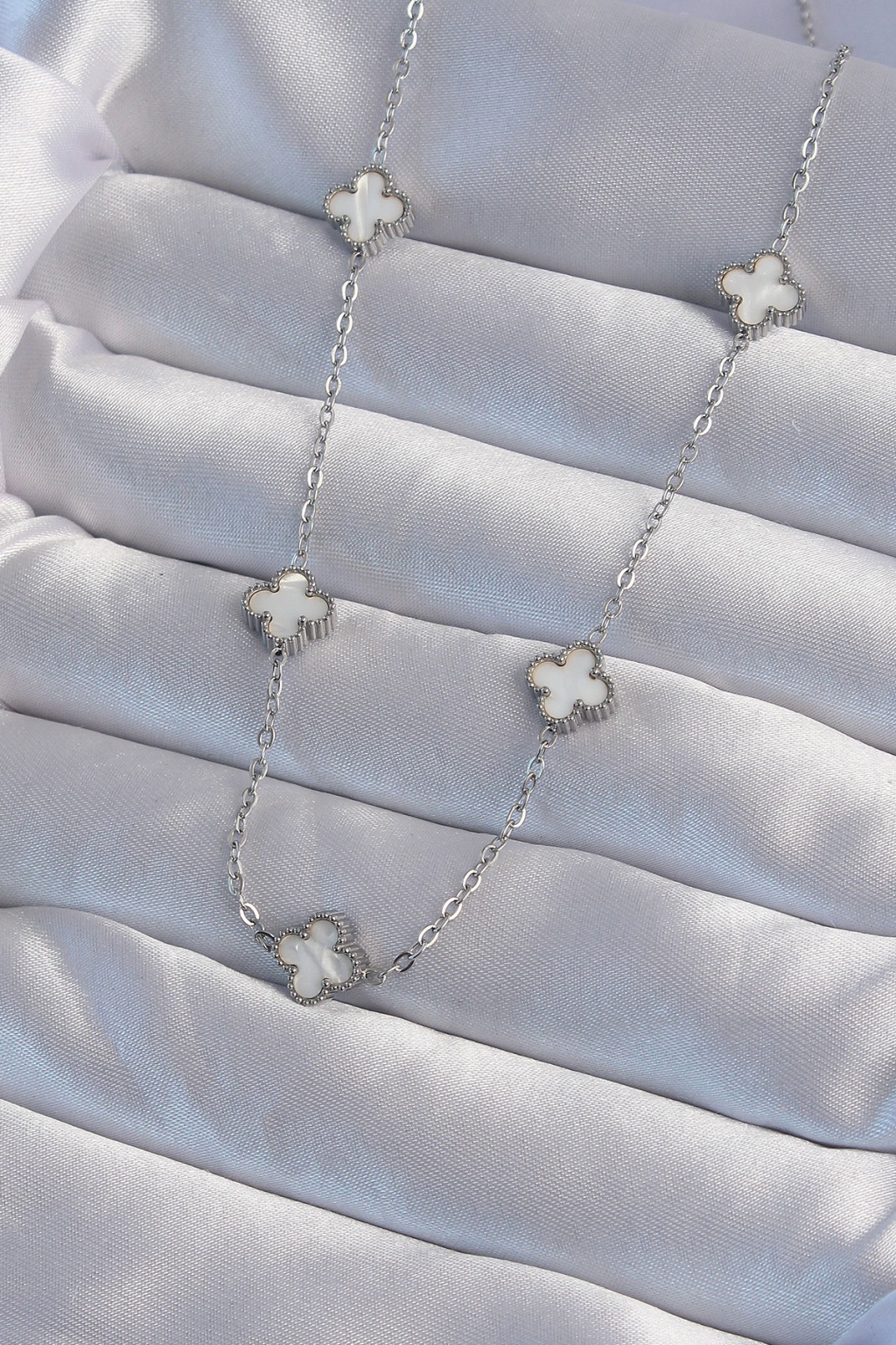 316L Çelik Gümüş Renk Minimal Beyaz Sedefli Yonca Kolye - Lisinya