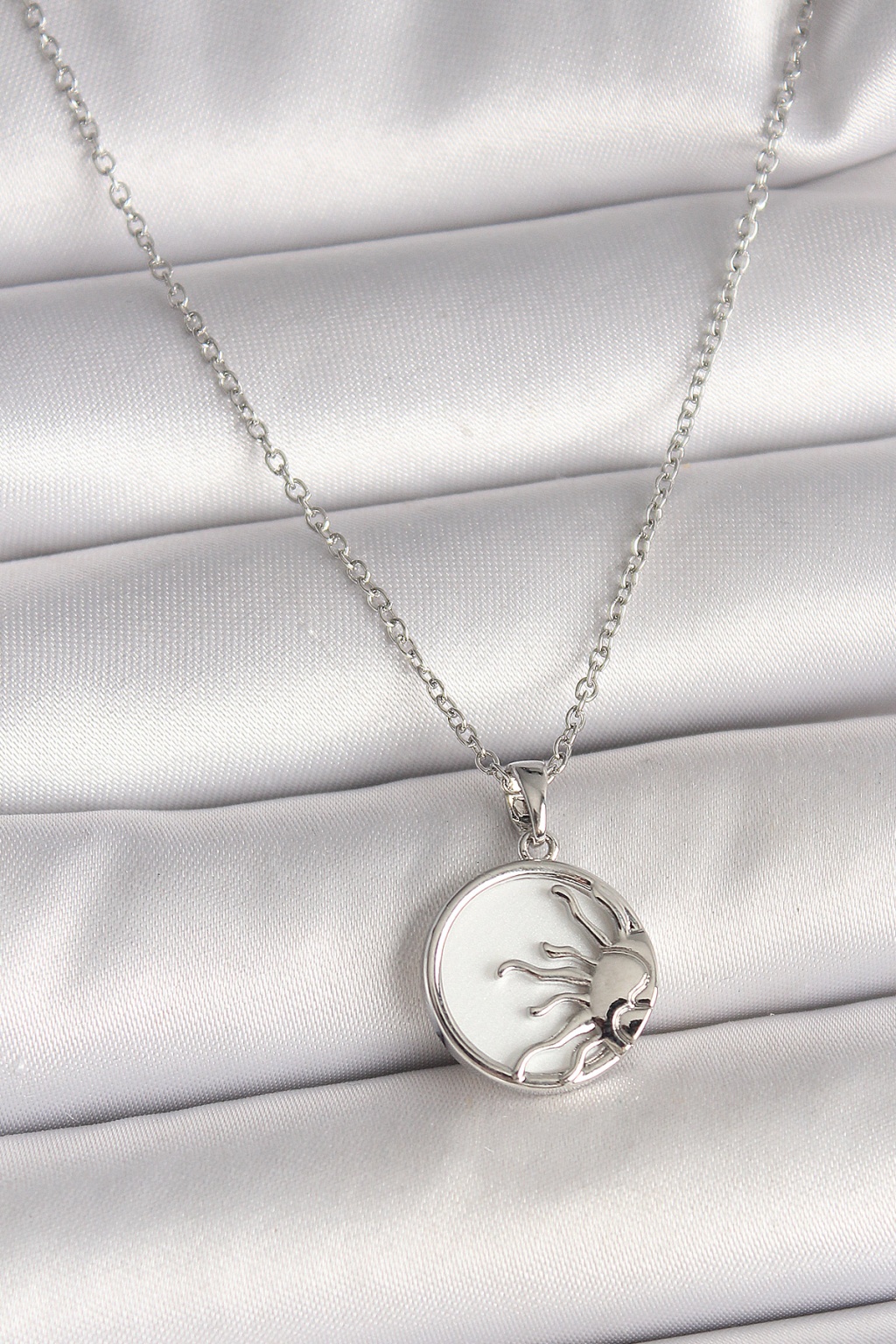 316L Çelik Gümüş Renk Zincir Beyaz Mineli Gün Batımı Model Kadın Kolye - Lisinya