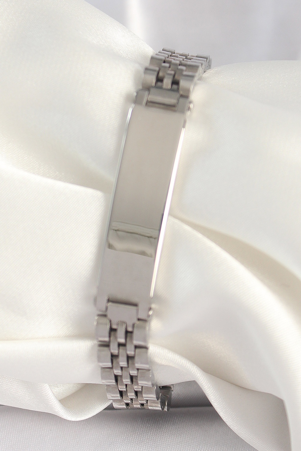 316L Çelik Gümüş Renk Zincir Künye Model Erkek Bileklik - Lisinya