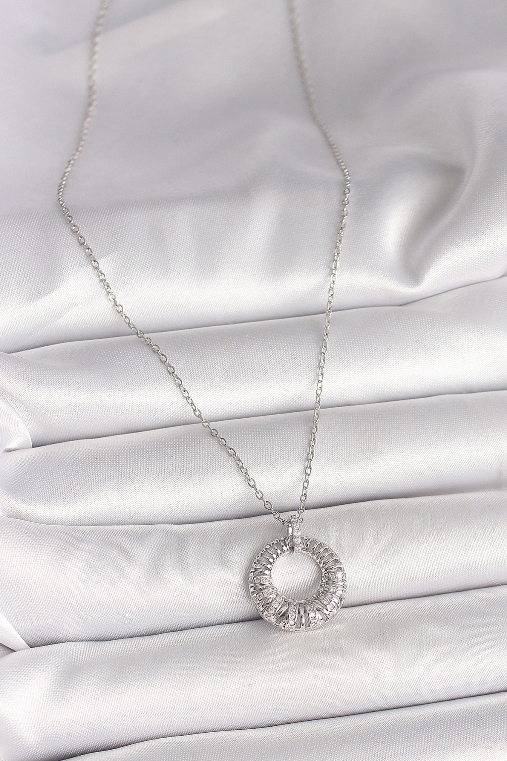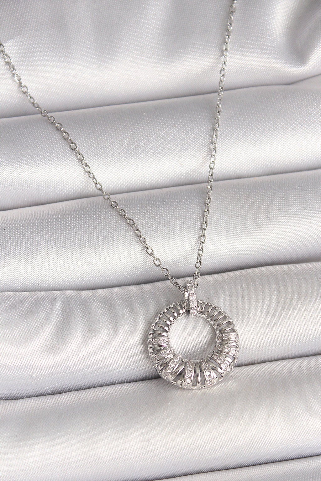 316L Çelik Gümüş Renk Zincir Zirkon Taş İşlemeli Daire Model Kadın Kolye -