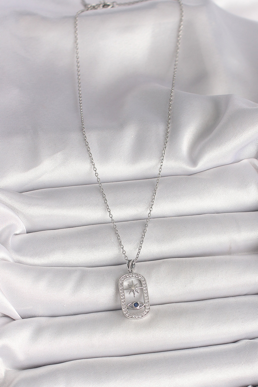 316L Çelik Gümüş Renk Zincir Zirkon Taşlı Göz Yıldız Model Kadın Kolye - Lisinya