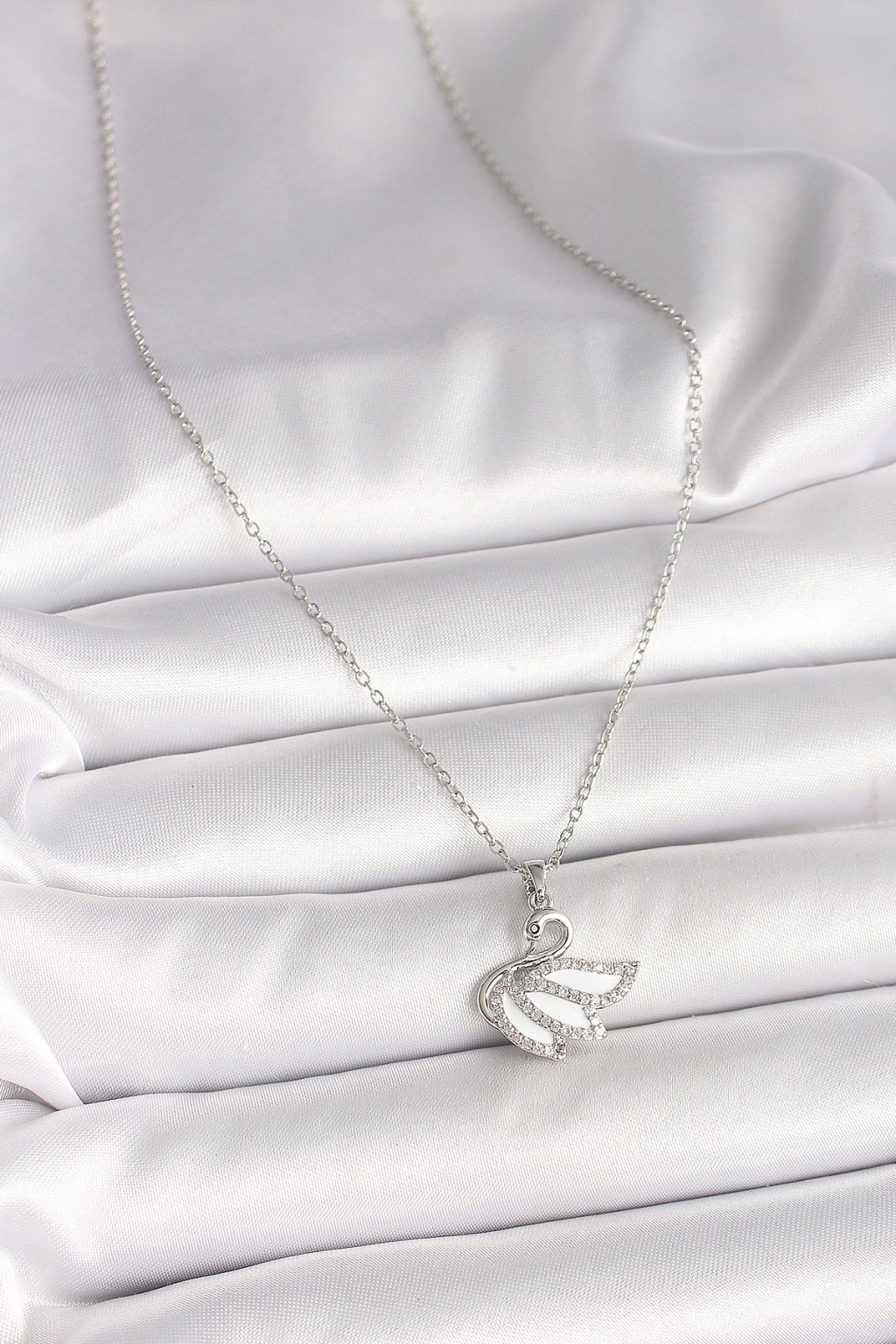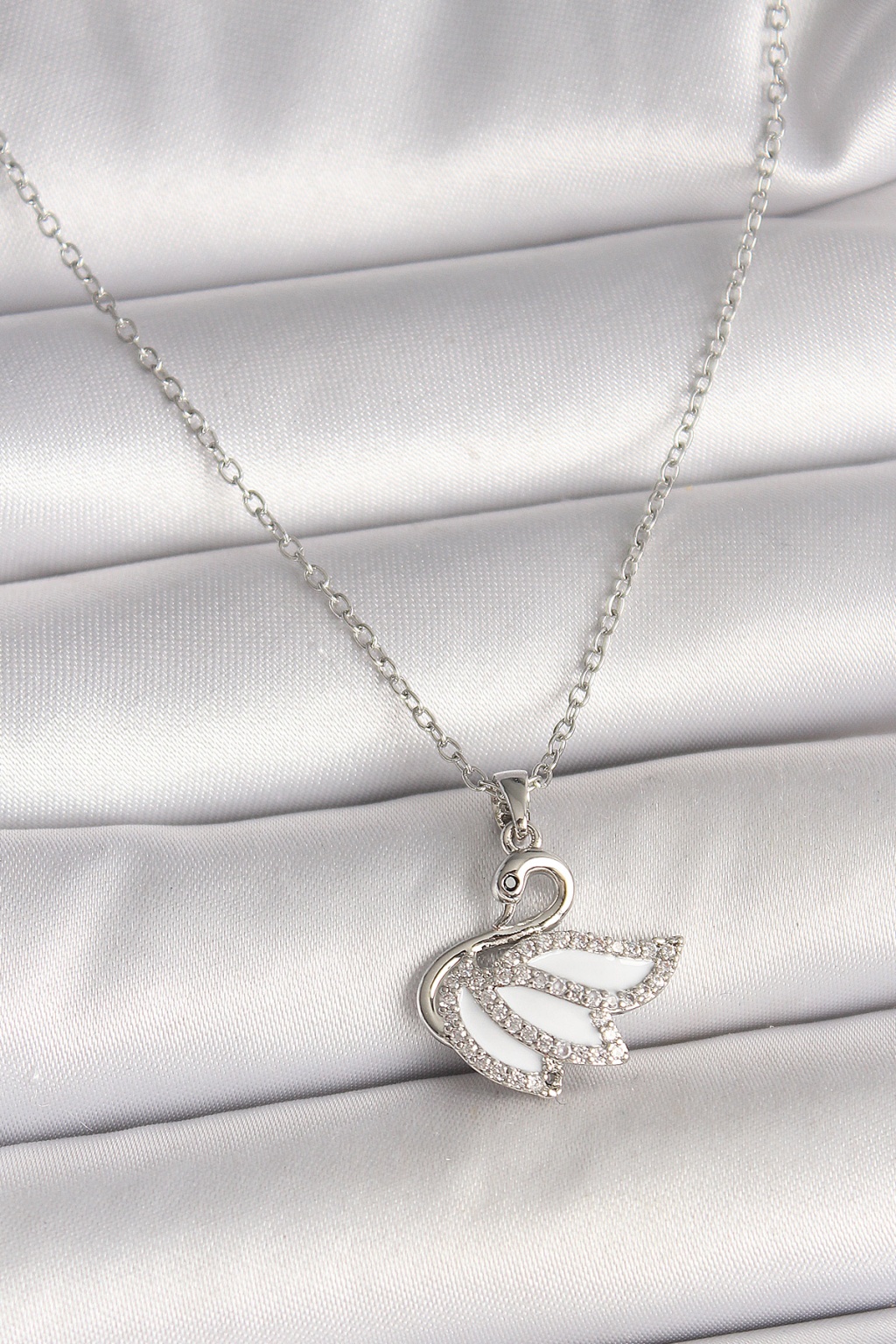 316L Çelik Gümüş Renk Zincir Zirkon Taşlı Kuğu Model Kadın Kolye -
