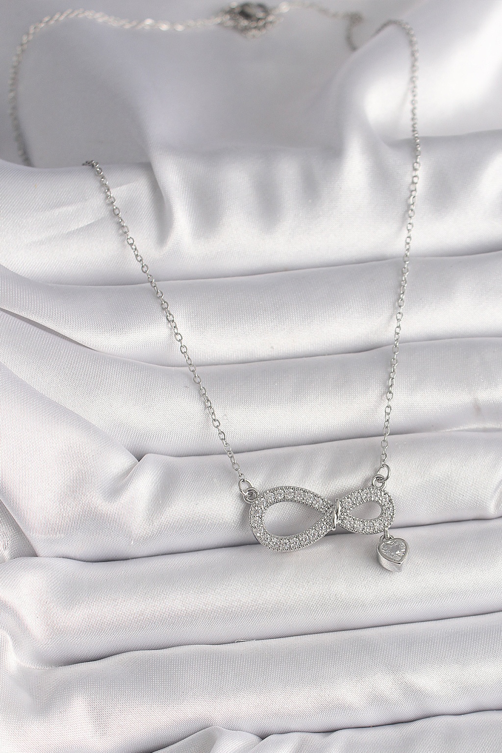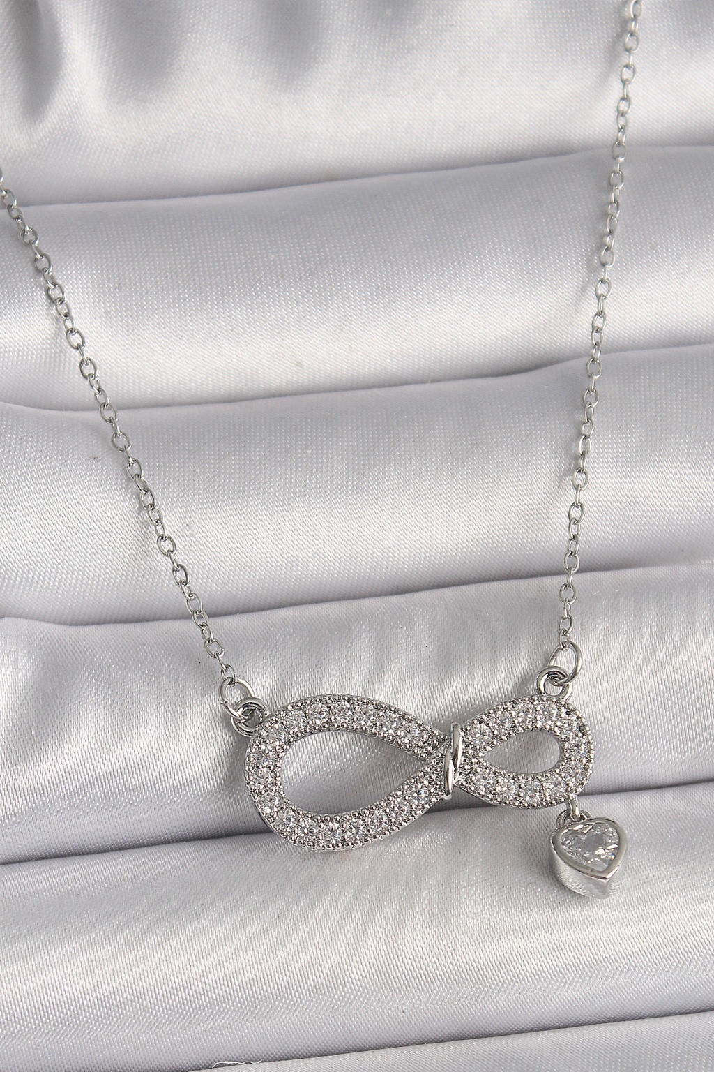 316L Çelik Gümüş Renk Zincir Zirkon Taşlı Sonsuzluk Model Taşlı Kalp Detay Kadın Kolye - Lisinya
