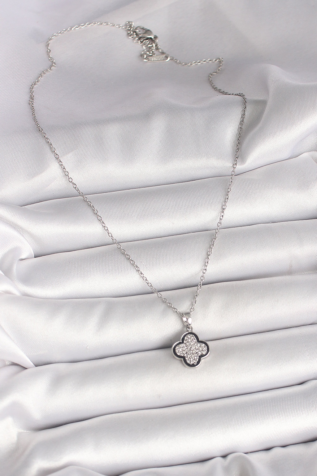316L Çelik Gümüş Renk Zincir Zirkon Taşlı Yonca Model Kadın Kolye -