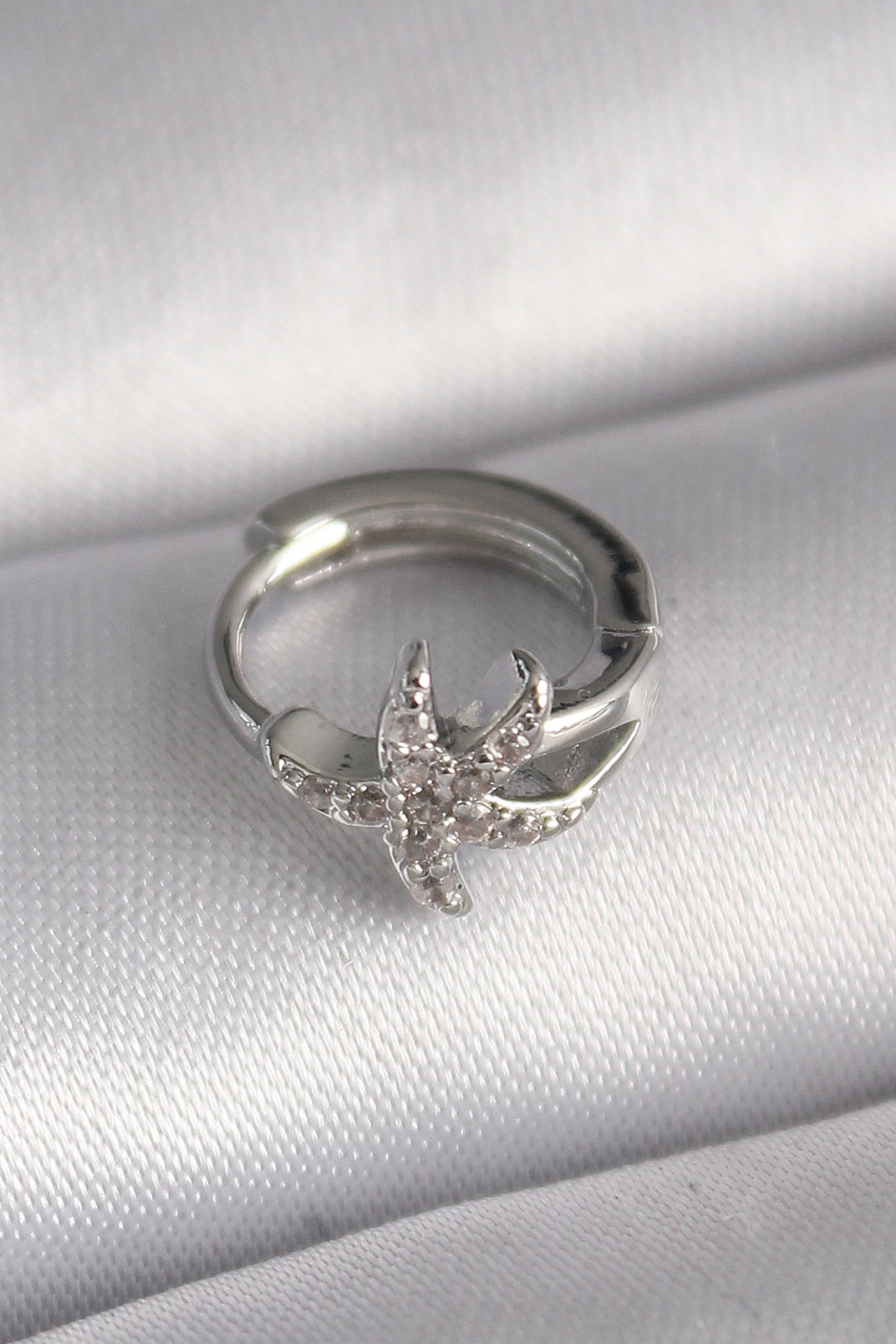 316L Çelik Gümüş Renk Zirkon Taşlı Deniz Yıldızı Model Tragus Piercing - Lisinya