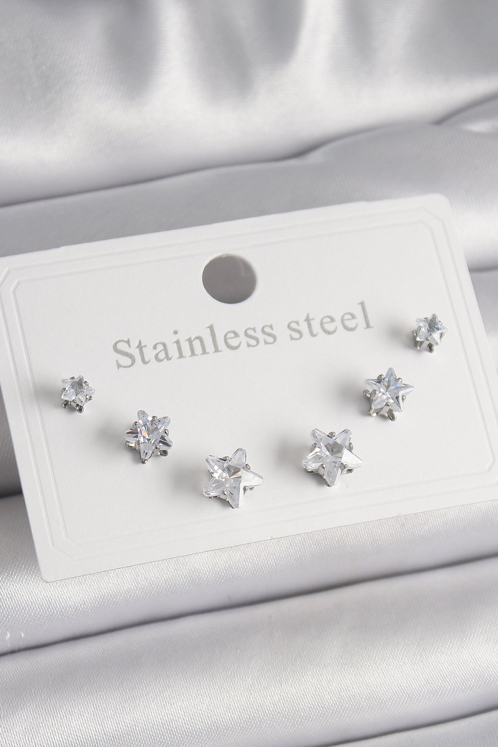 316L Çelik Gümüş Renk Zirkon Taşlı Yıldız Model Kadın Küpe Seti - Lisinya
