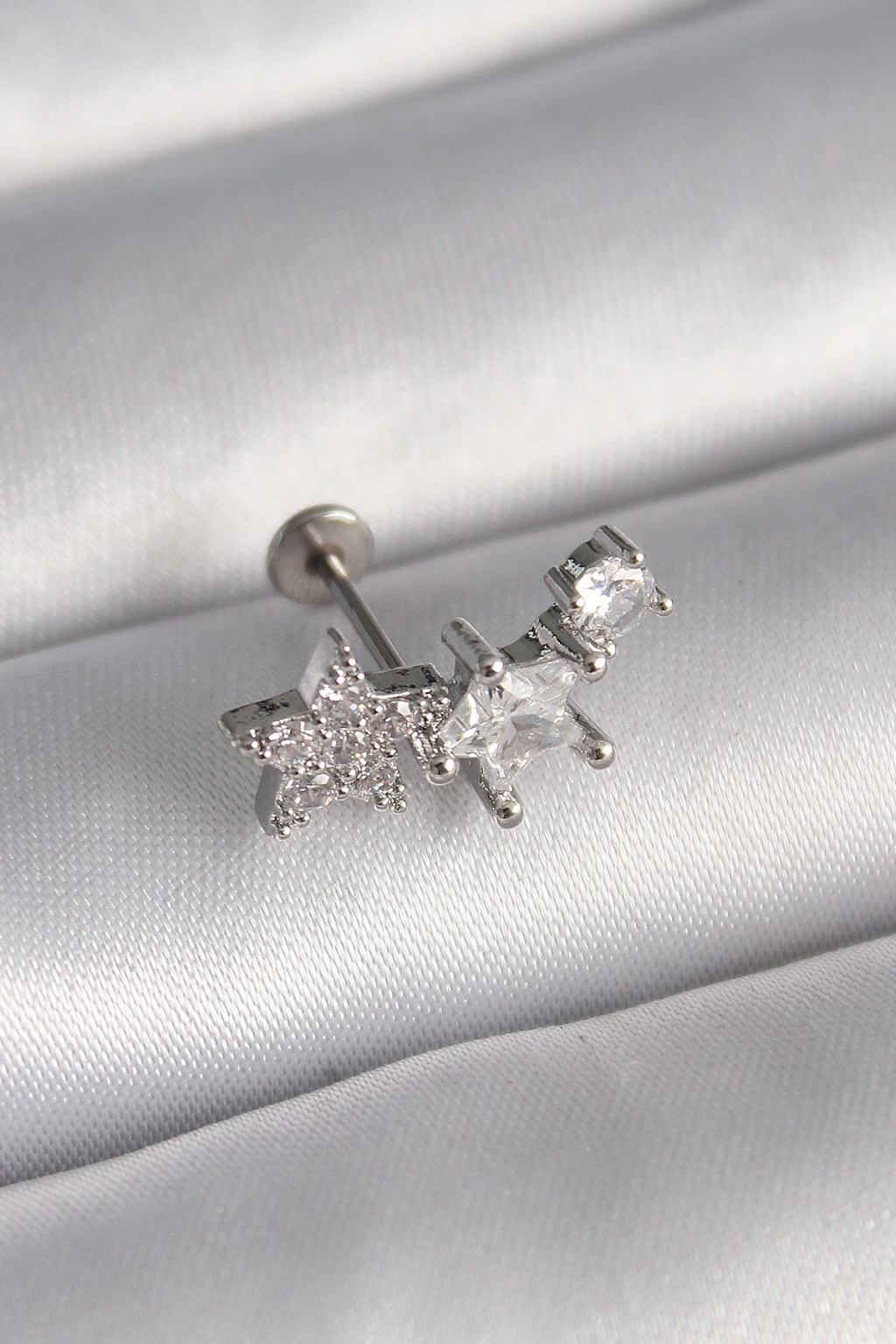316L Çelik Gümüş Renk Zirkon Taşlı Yıldız Model Tragus Piercing -