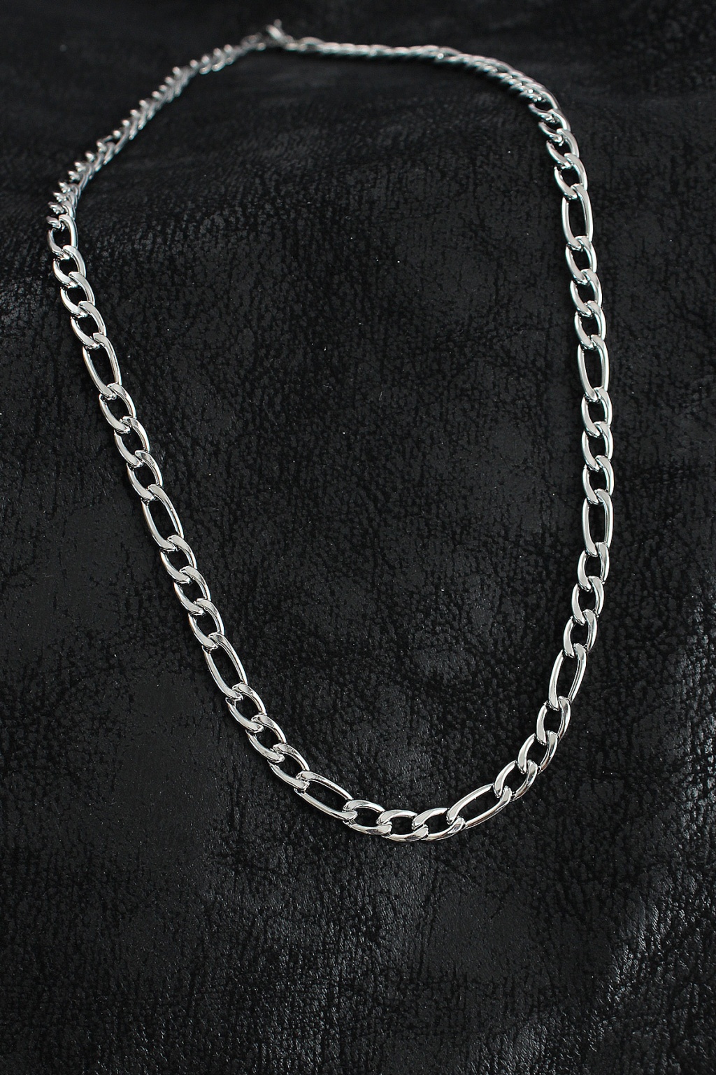 316L Çelik Kalın Figaro Zincir Model Gümüş Renk Erkek Kolye -
