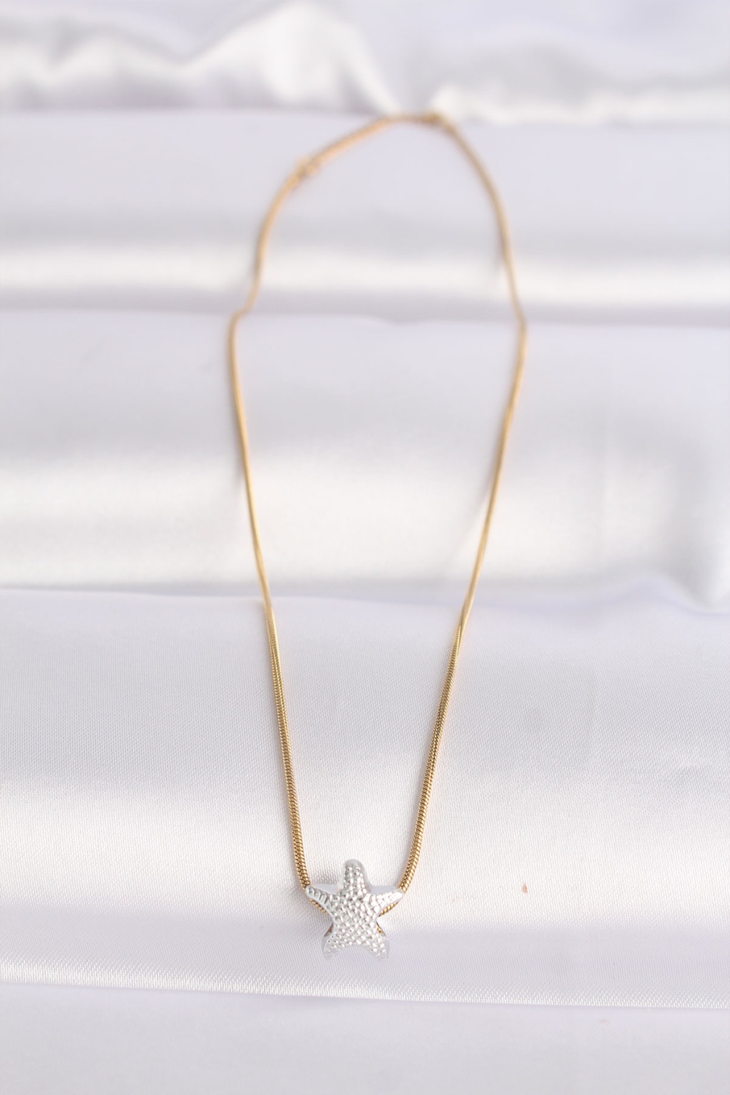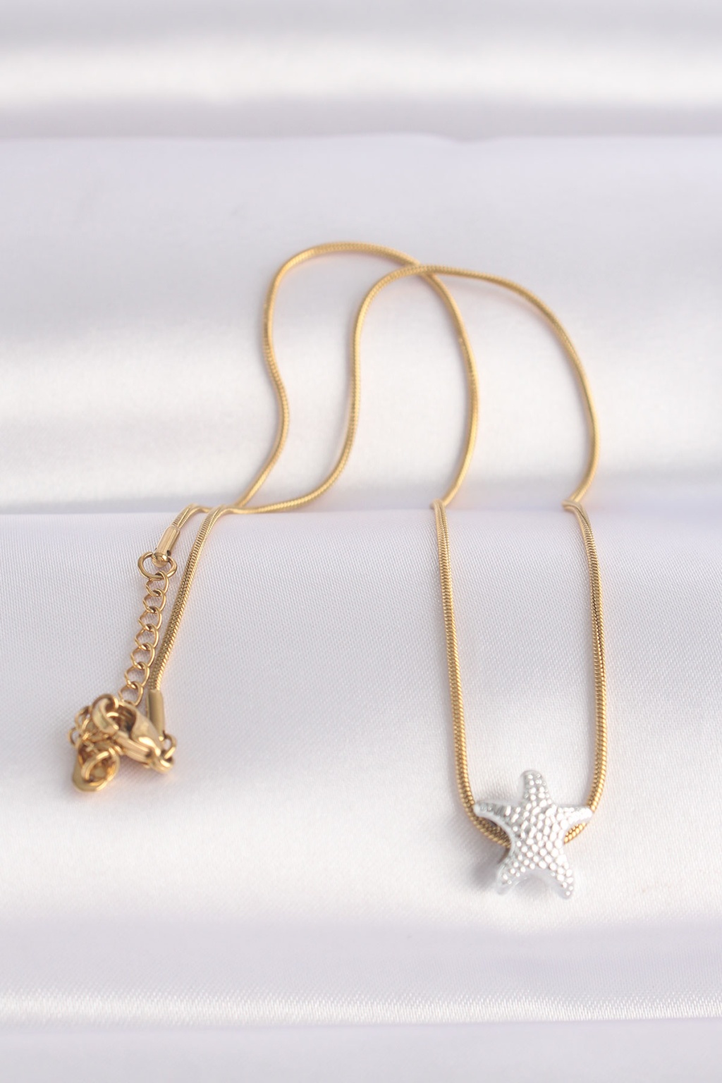 316L Çelik Zincir Altın Renk Zincirli Gümüş Renk Deniz Yıldızı Tasarımlı Kolye - Lisinya