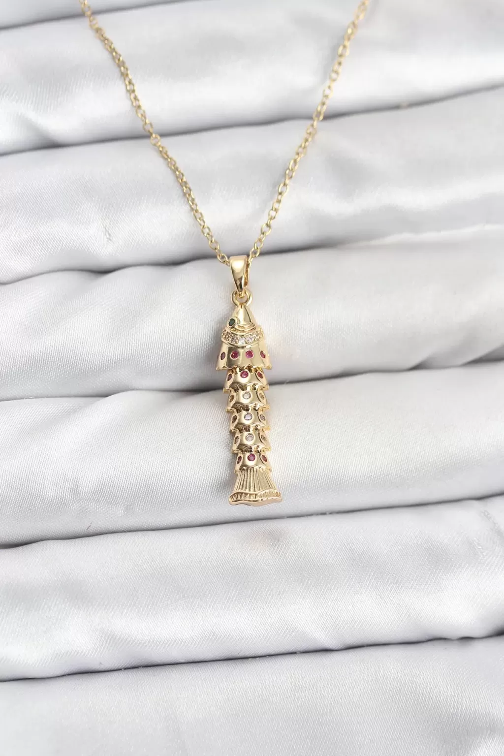 316L Çelik Zincir Gold Renk Balık Model Zirkon Taşlı Kadın Kolye