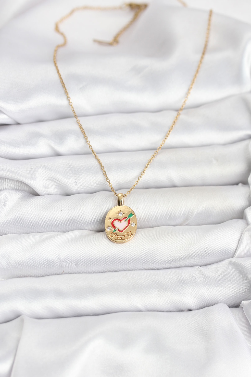 316L Çelik Zincir Gold Renk Kalp Figürlü Kadın Kolye -