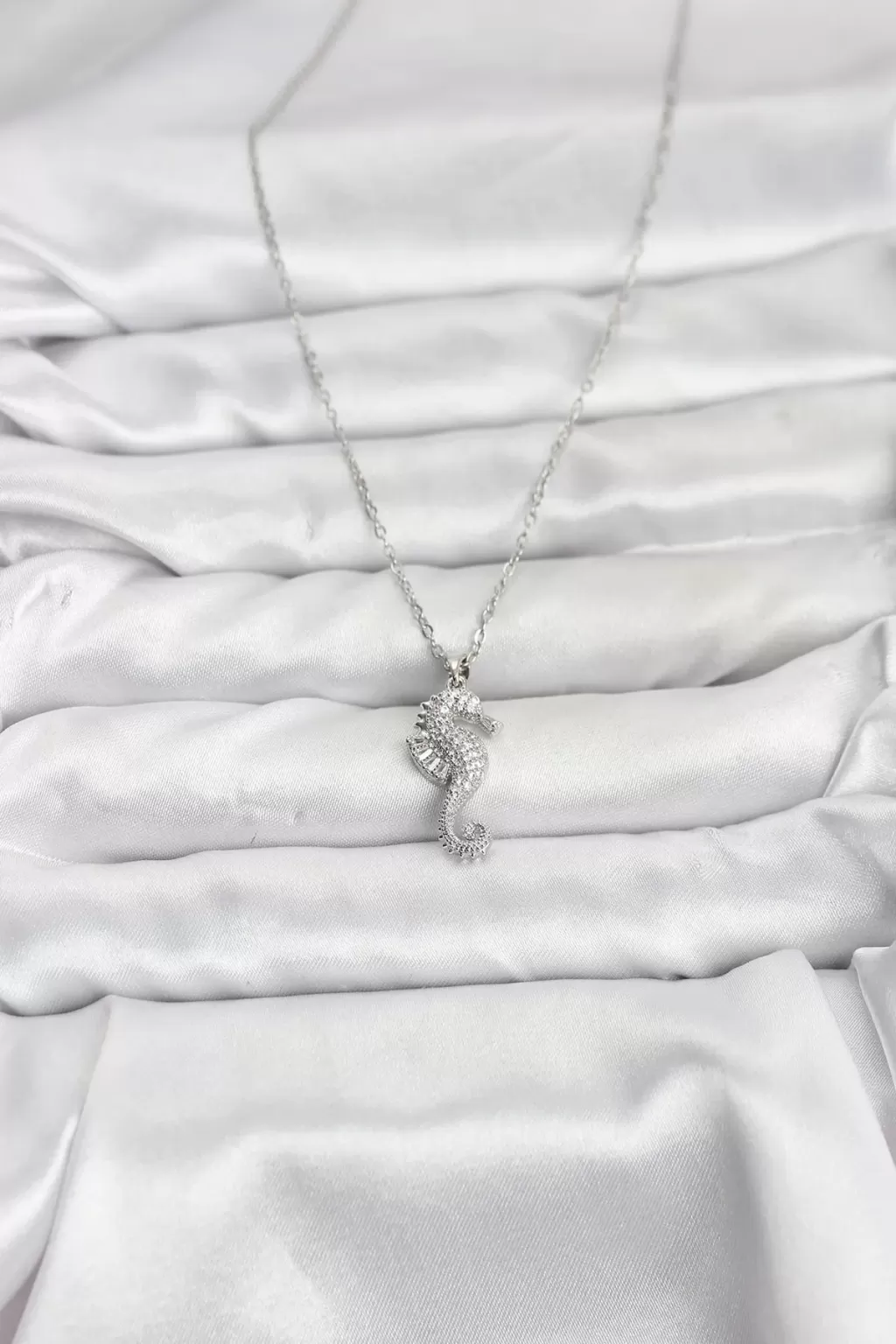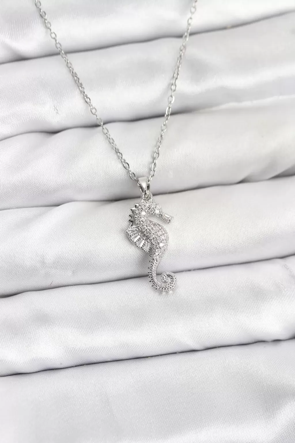 316L Çelik Zincir Gümüş Renk Deniz Atı Model Zirkon Taşlı Kadın Kolye