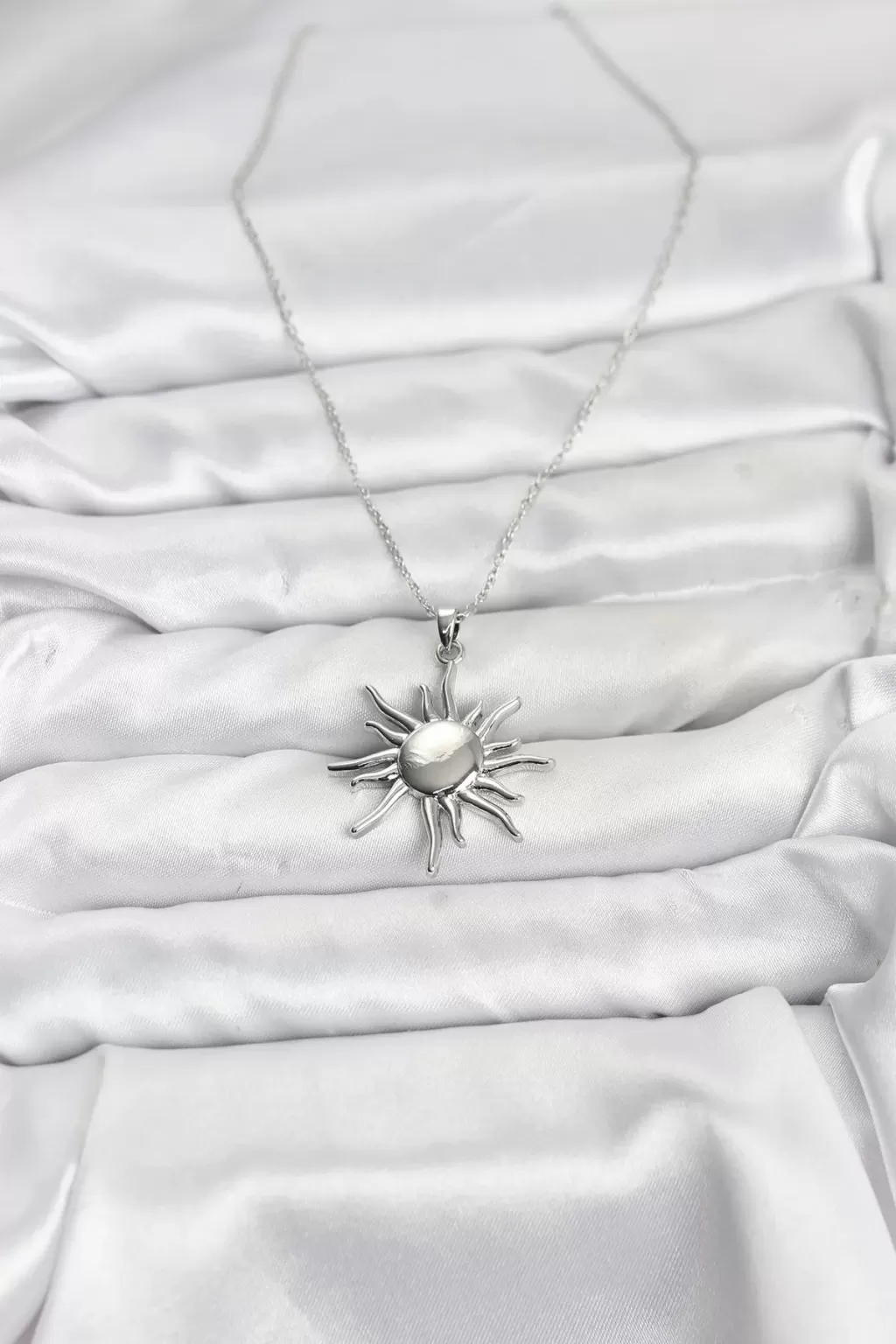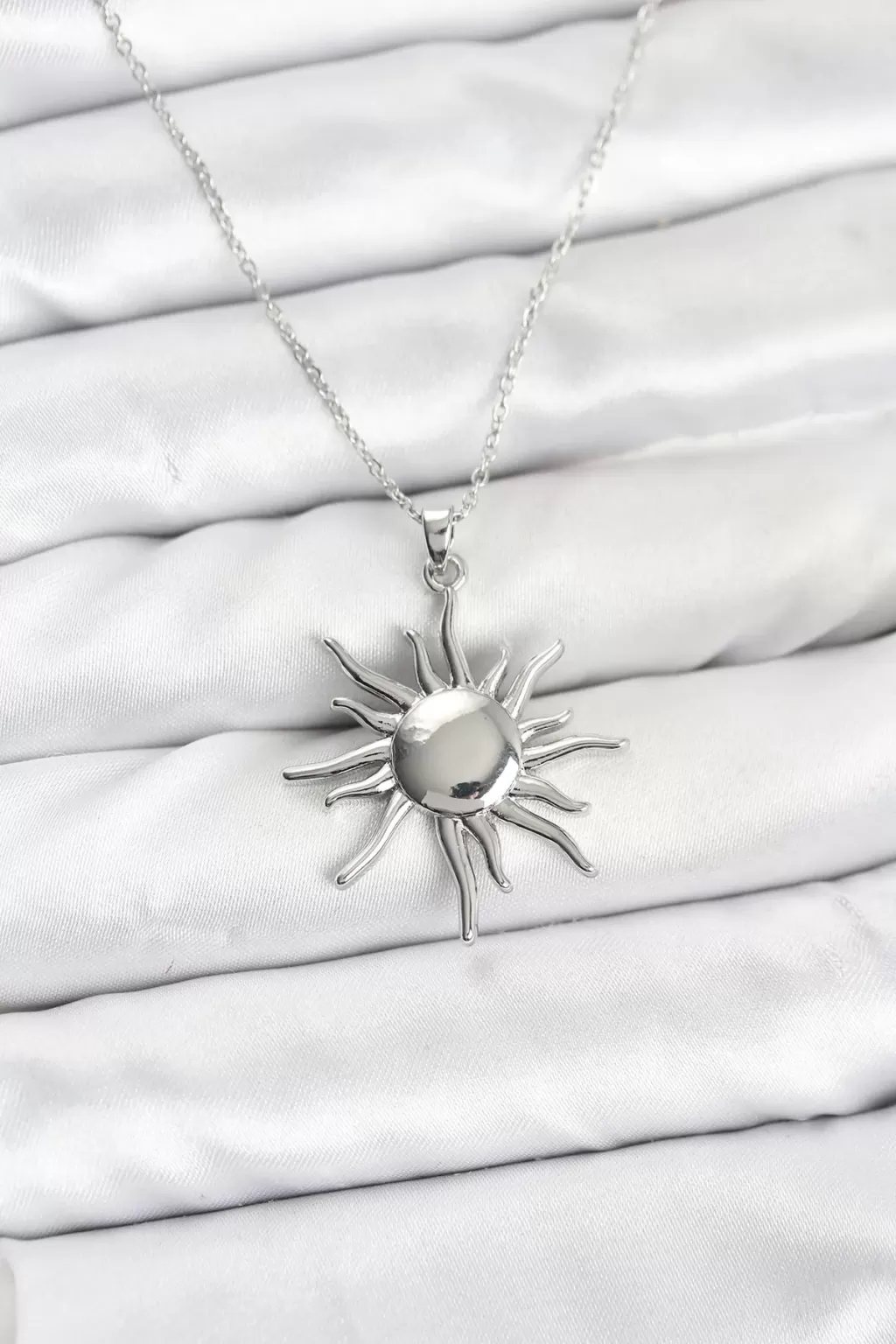 316L Çelik Zincir Gümüş Renk Güneş Model Kadın Kolye