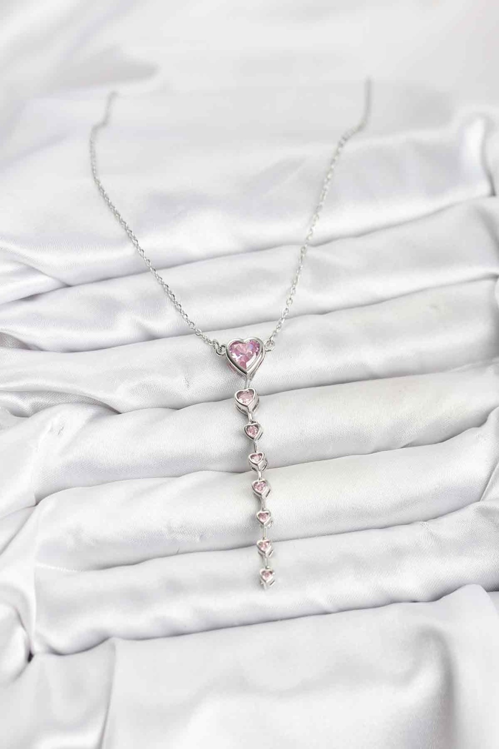 316L Çelik Zincir Gümüş Renk Pembe Kalp Kadın Kolye - Lisinya