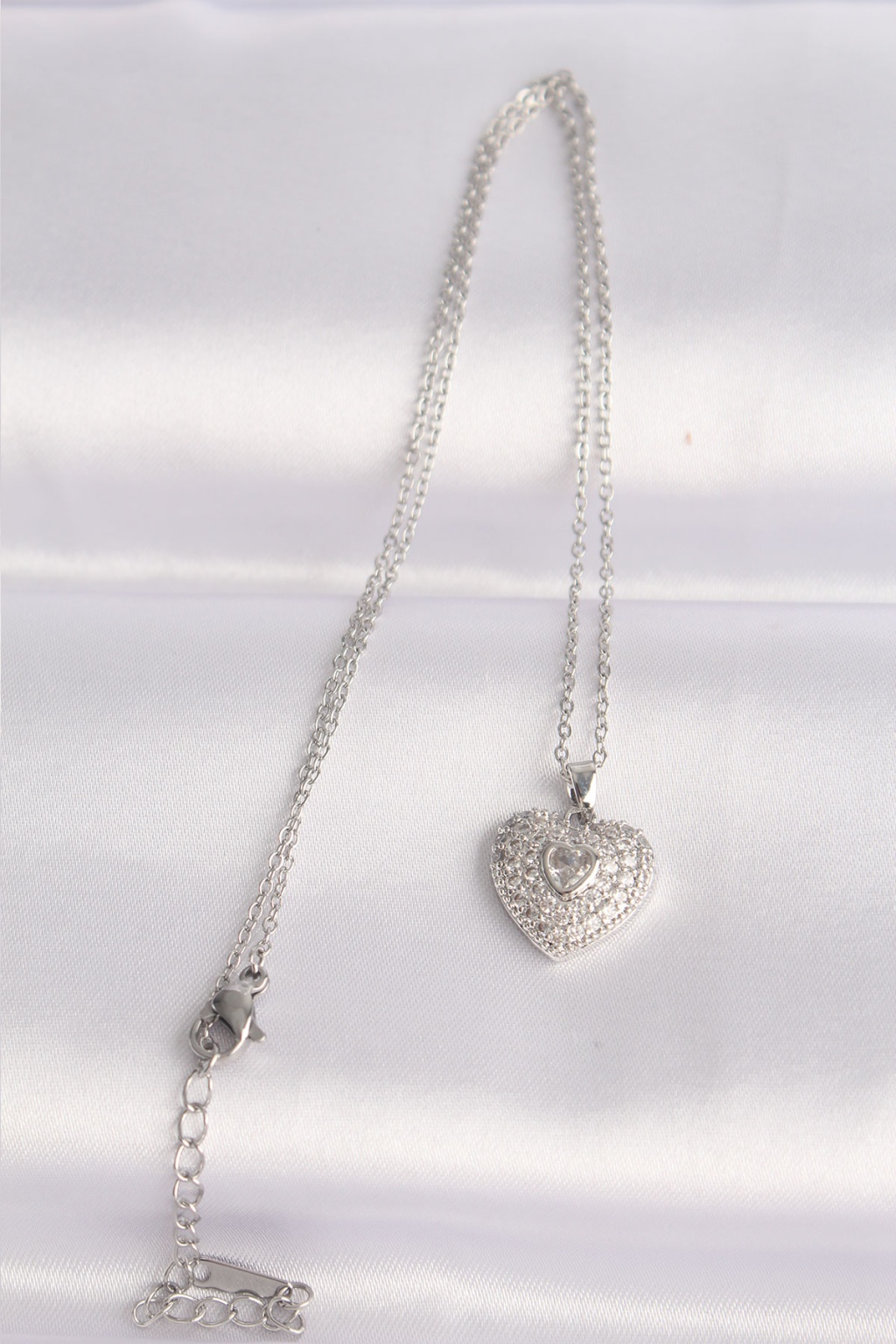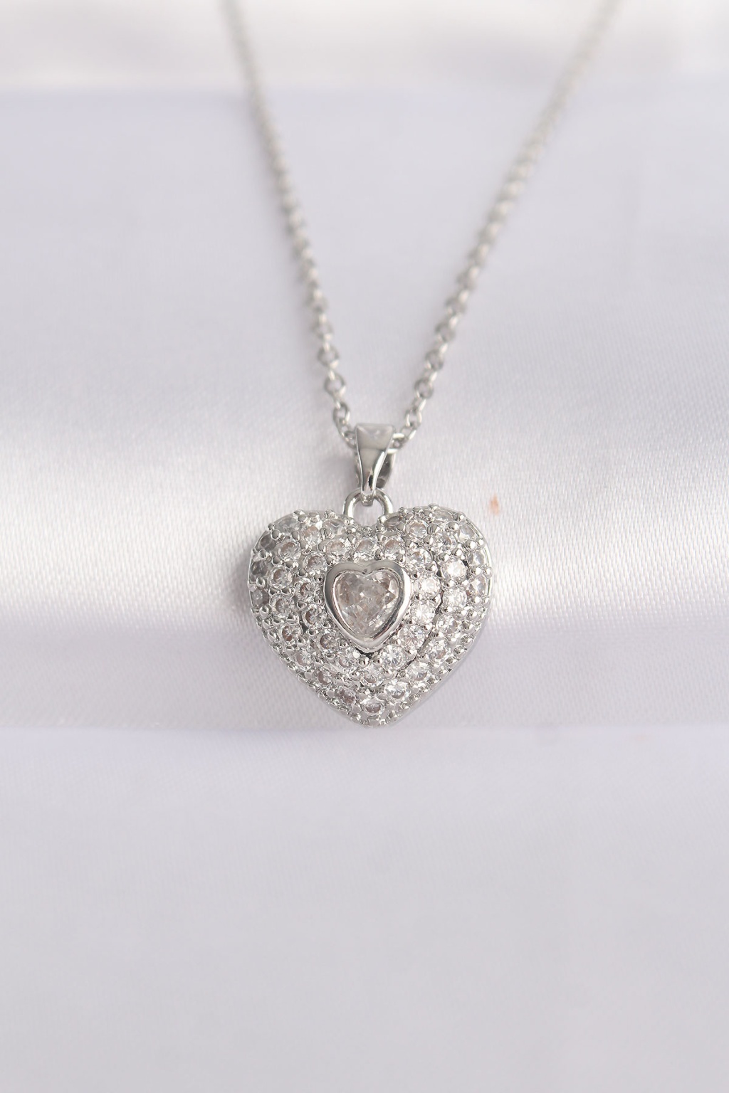 316L Çelik Zincir Gümüş Renk Zirkon Taşlı Kalp Kolye - Lisinya