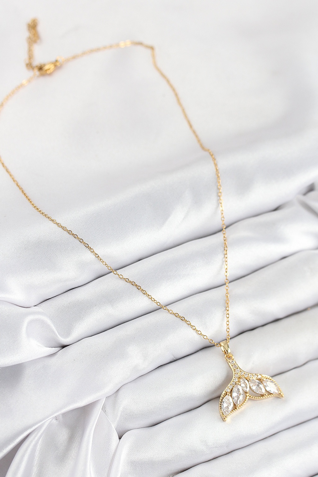 316L Çelik Zirkon Taşlı Balık Kuyruğu Model Gold Renk Kadın Kolye -