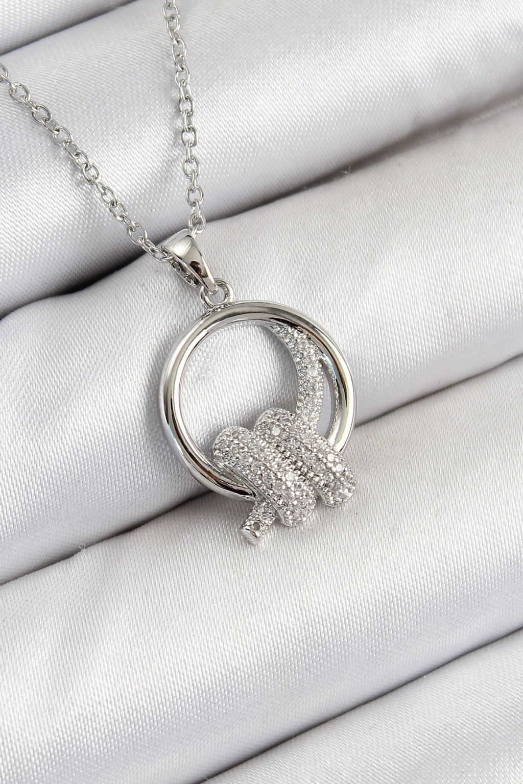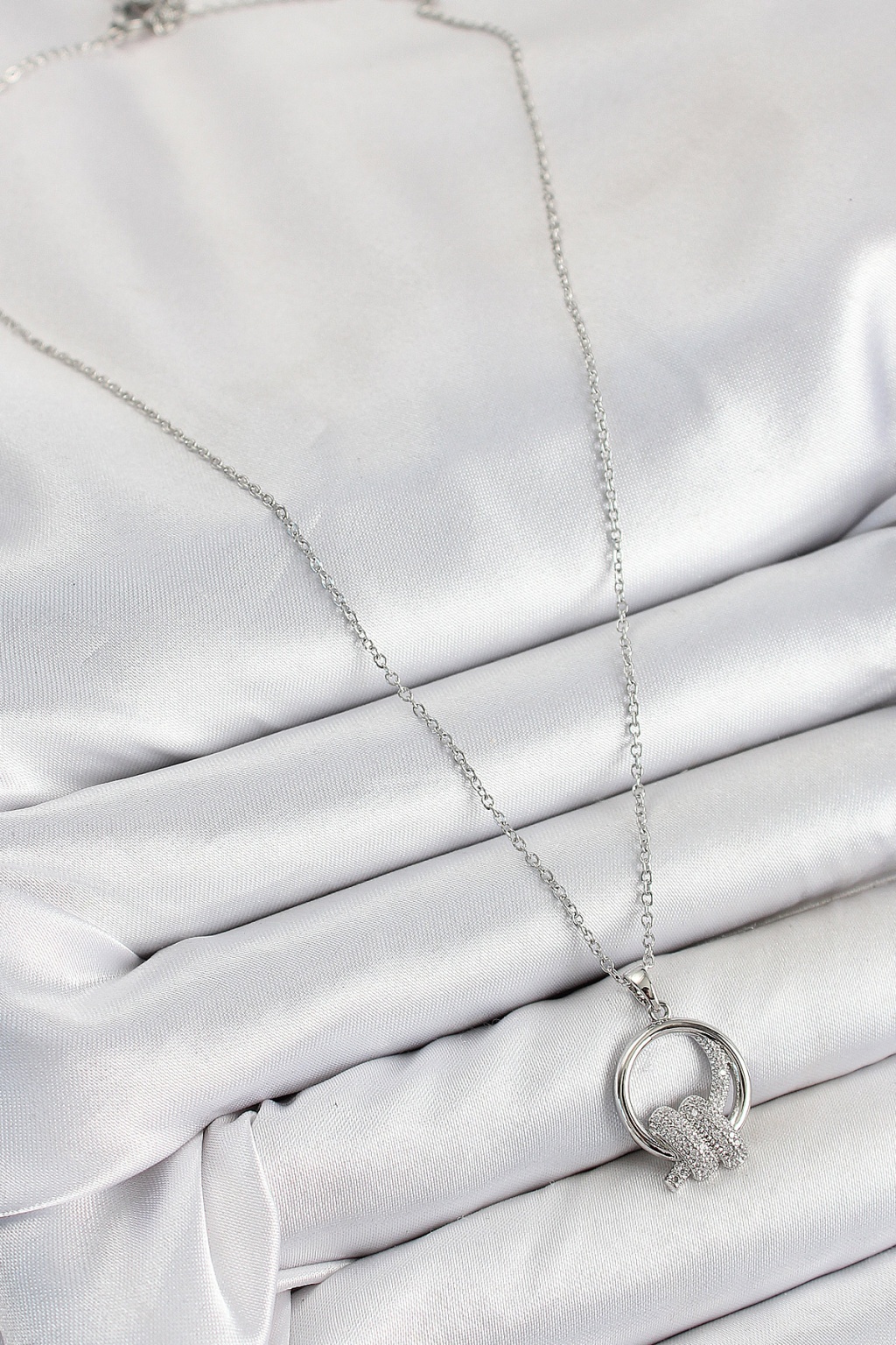316L Çelik Zirkon Taşlı Düğüm Model Gümüş Renk Kadın Kolye - Lisinya