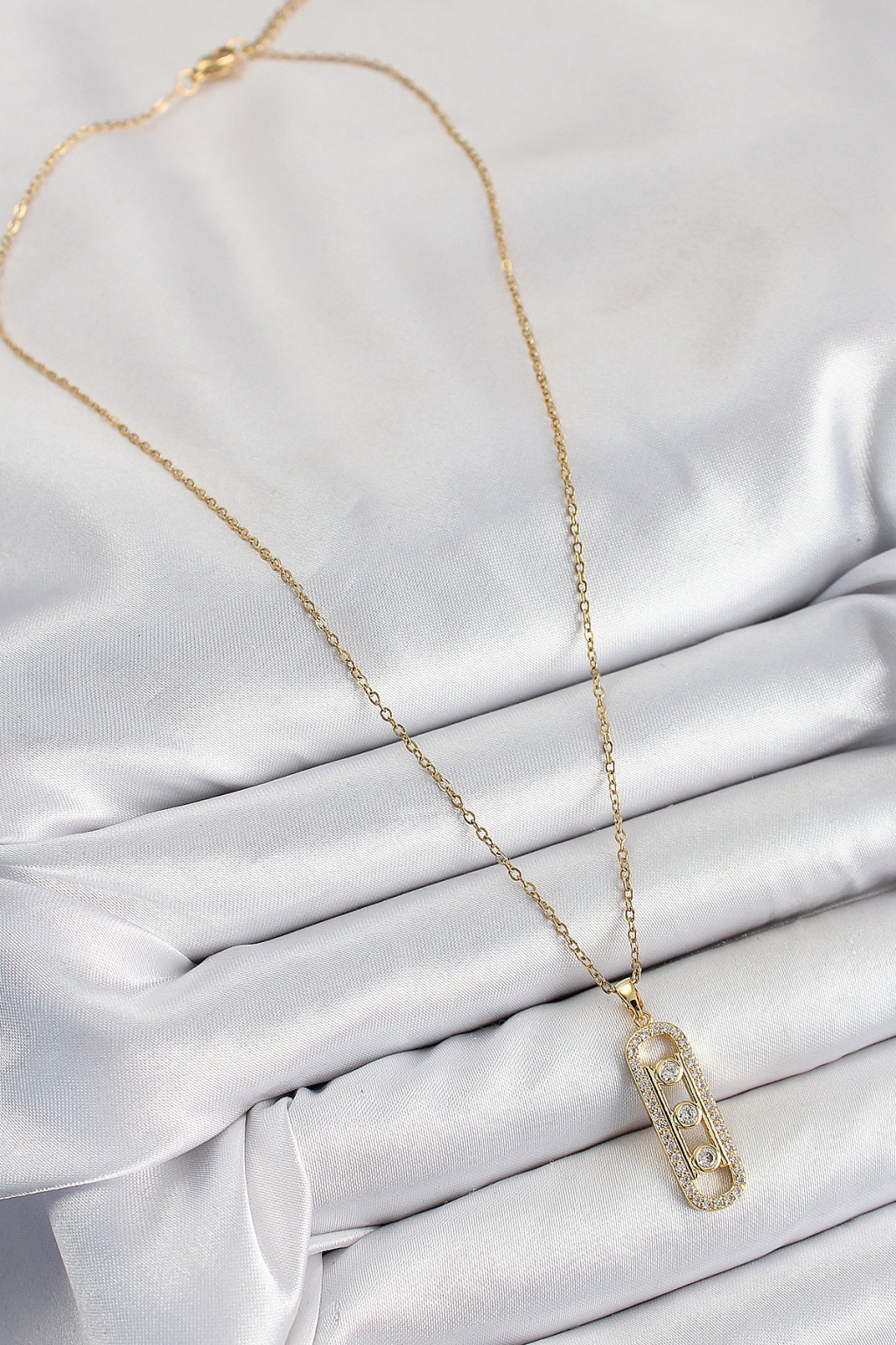 316L Çelik Zirkon Taşlı Messika Model Gold Renk Kadın Kolye - Lisinya
