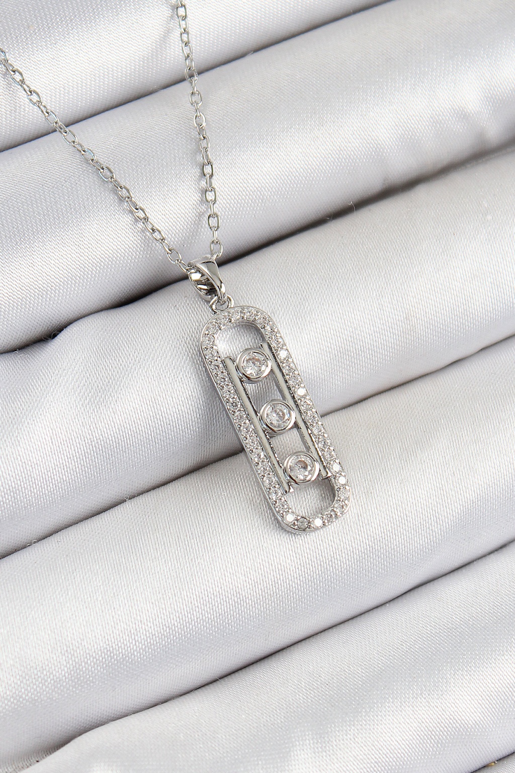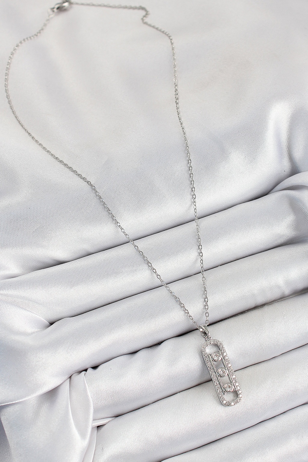 316L Çelik Zirkon Taşlı Messika Model Gümüş Renk Kadın Kolye - Lisinya