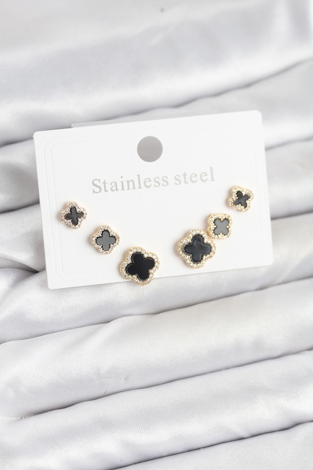 316L Çelik Zirkon Taşlı Yonca Model Kadın Küpe Seti -