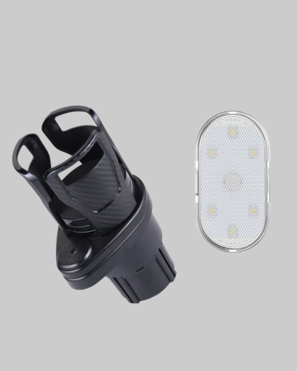 360° Döner Çiftli Bardak Tutucu ve Kablosuz Ambiyans LED Işık Araç Seti -