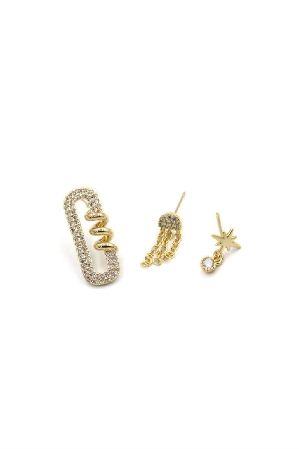 3'Lü Taşlı Halka Küpe - Altın