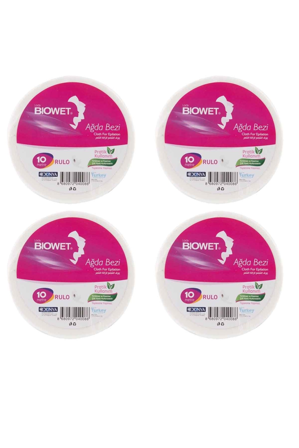 | 4 Adet Ağda Bezi 10 Metre Kullanıma Hazır Ağda Bezi Pratik Kullanım Yırtılmaz ve Kopmaz Çift Yönlü Kullanılabilir Tüylenme Yapma Paket içeriği; 4 Adet 10 Metre Biowet ağda bezi |