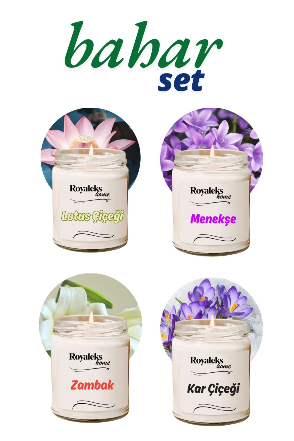 | 4 Adet Doğal Özel Seri Kokulu Dekoratif Kavanoz Mum 4X210 cc - Bahar Seti - RYL |