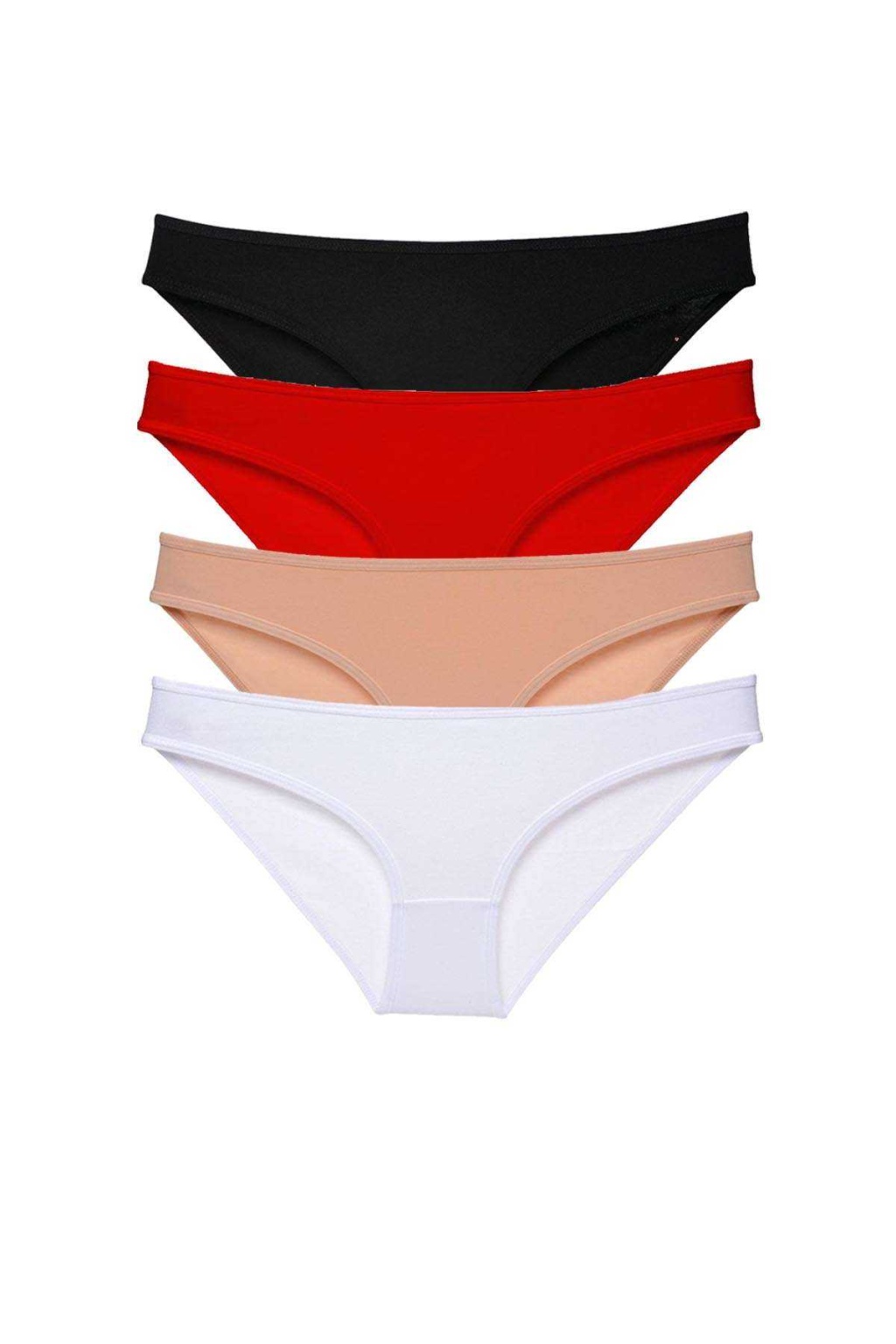 4 adet Süper Eko Set Likralı Kadın Slip Külot Siyah Kırmızı Ten Beyaz