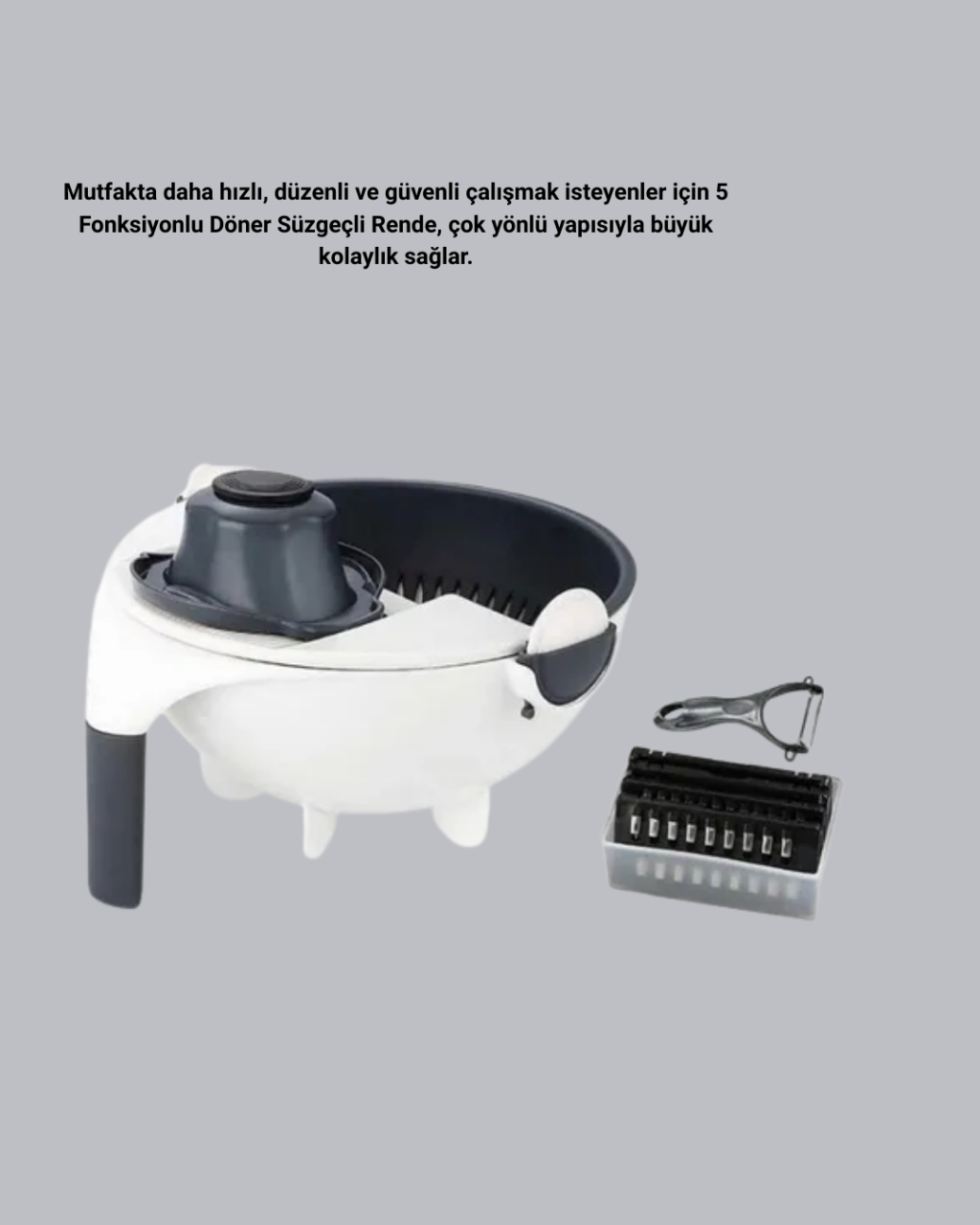 5 Fonksiyonlu Döner Rende Süzgeçli Çok Amaçlı Sebze Doğrayıcı Kaymaz Tabanlı -